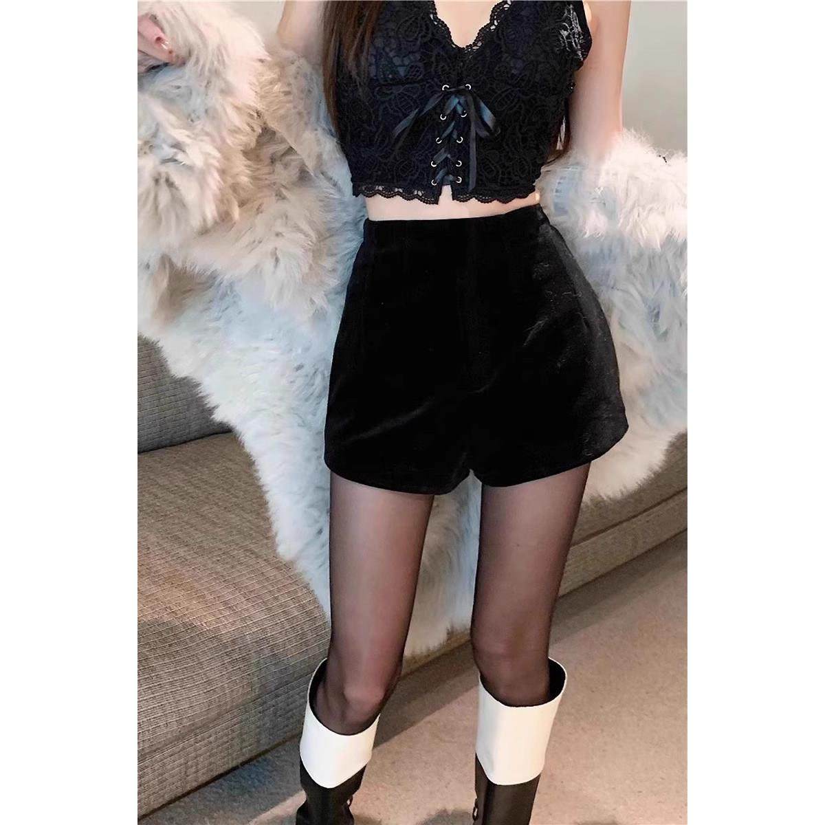 2025春秋新款丝绒短裤女高级感a字靴裤高腰阔腿裤加厚包臀打底裤