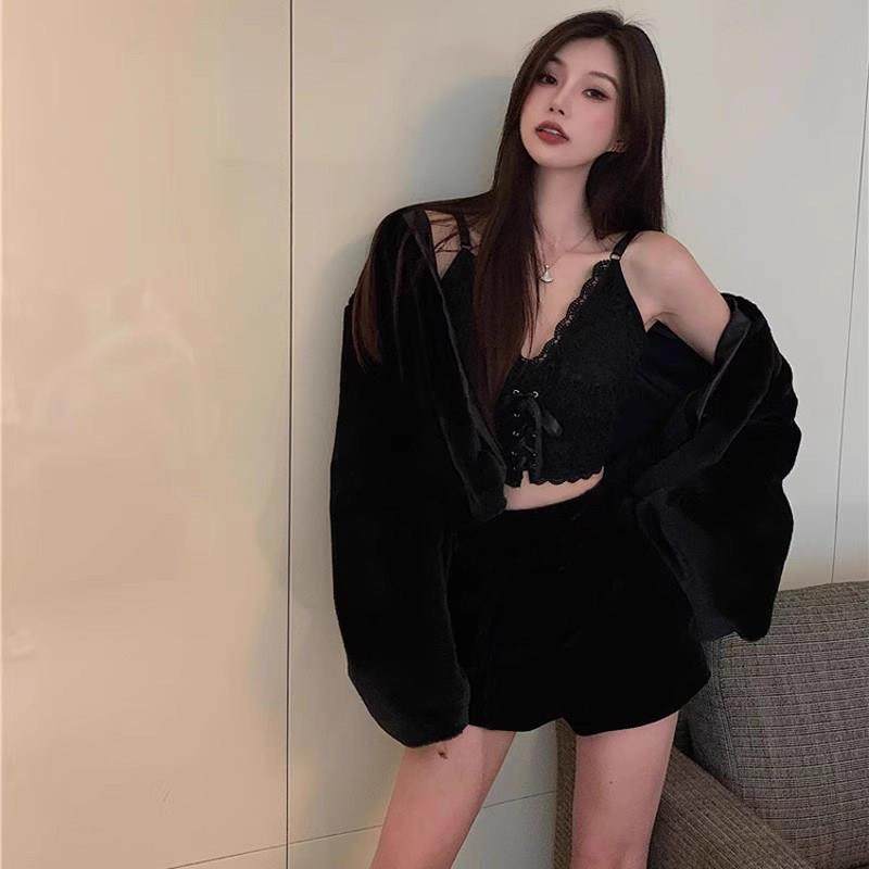 首页> 女装> 2025春秋新款丝绒短裤女高级感a字靴裤高腰阔腿裤加厚包臀打底裤