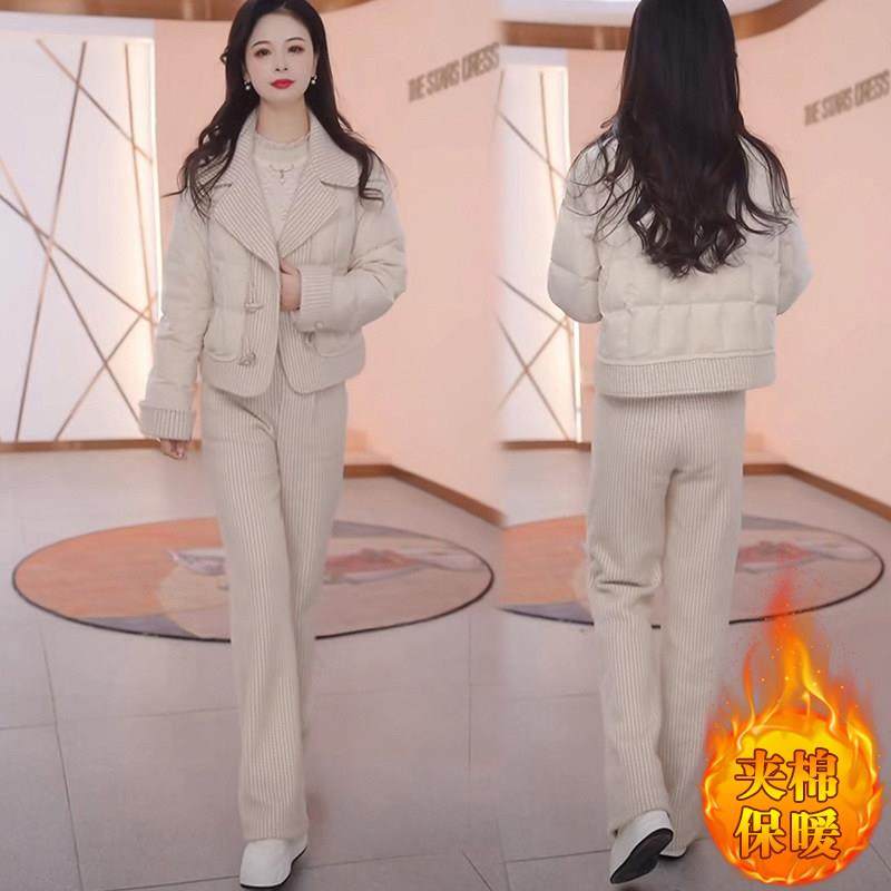 首页> 女装> 欧洲站小香风夹棉加厚时尚套装女2025冬季保暖棉衣外套气质两件套