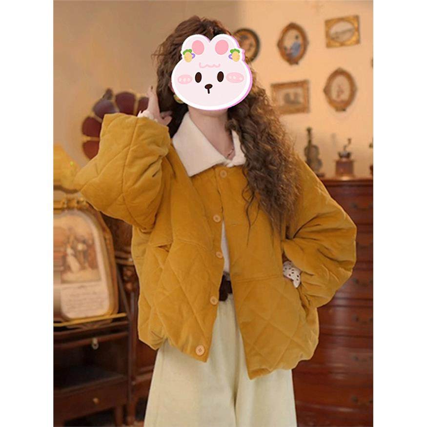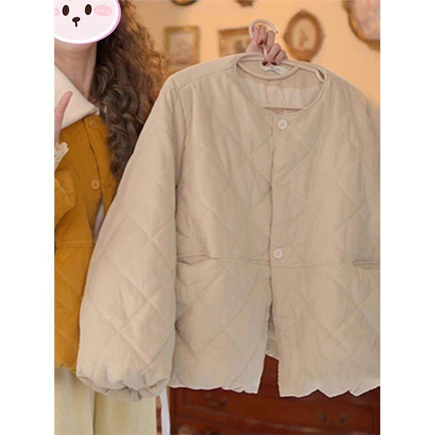 2025冬季新款设计感圆领百搭棉服女韩系纯色宽松显瘦保暖棉衣外套