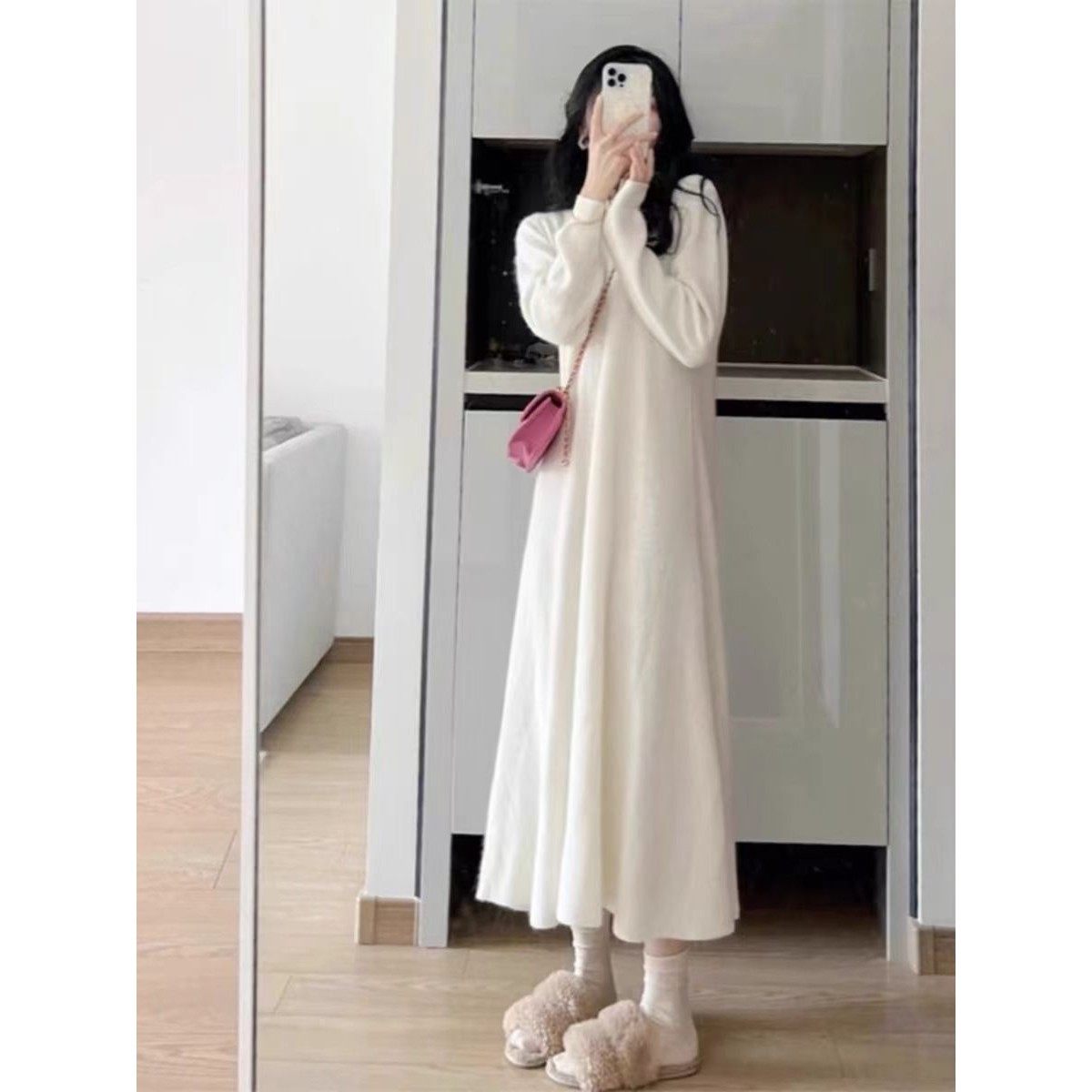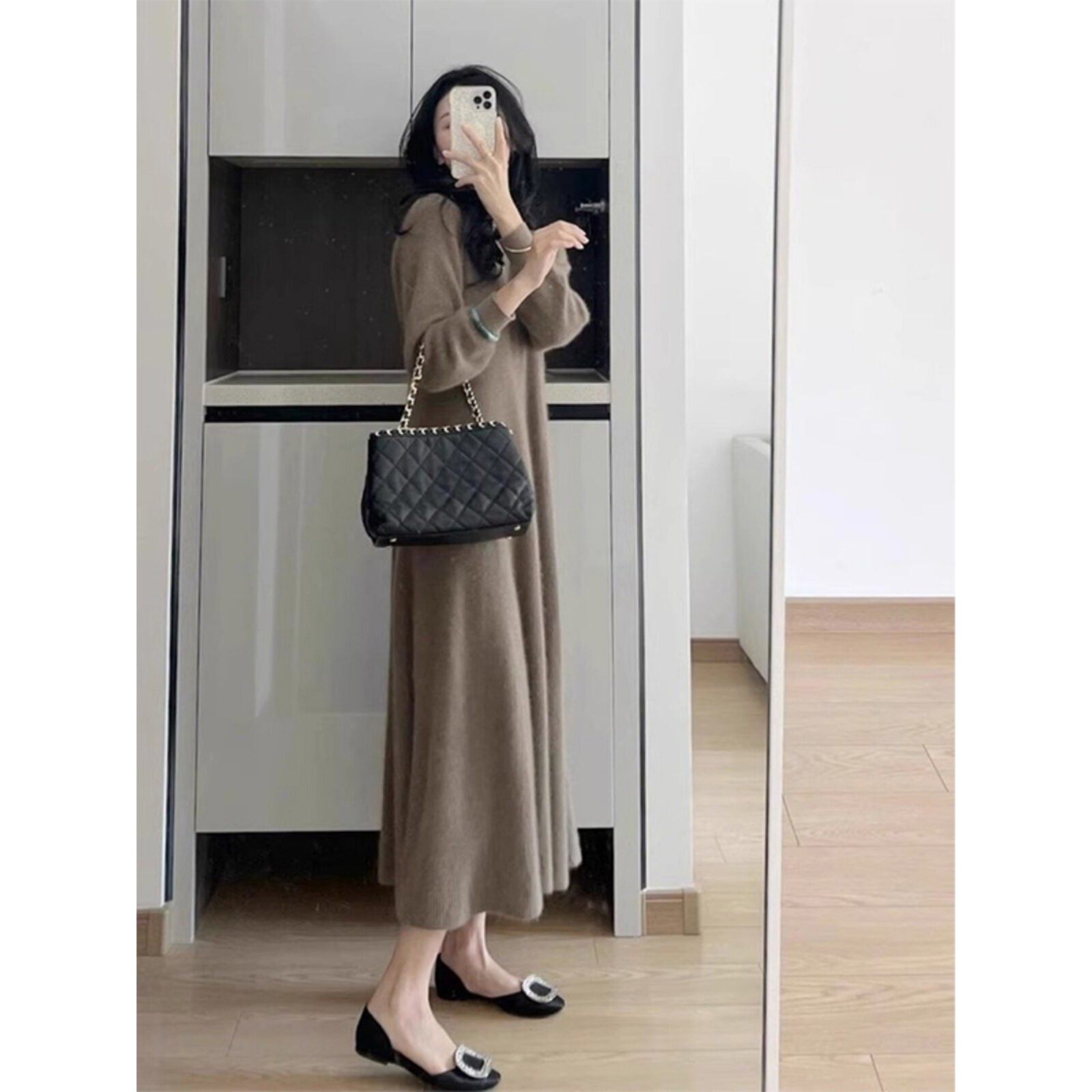 欧洲秋季女性2025新法国a字裙长过膝针织底裤连衣裙