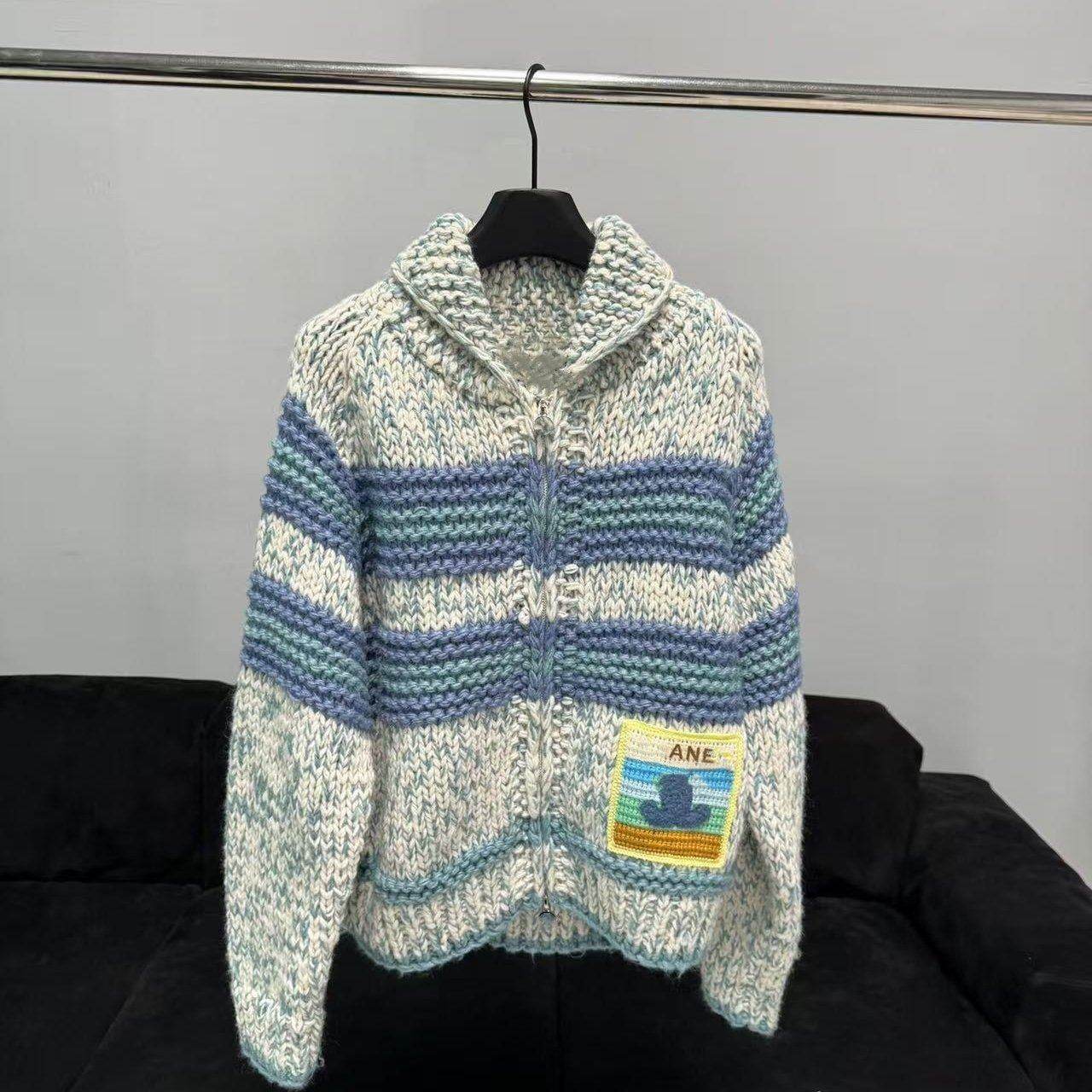 好漂亮好漂亮韩系复古撞色条纹针织开衫女慵懒风翻领拉链毛衣外套