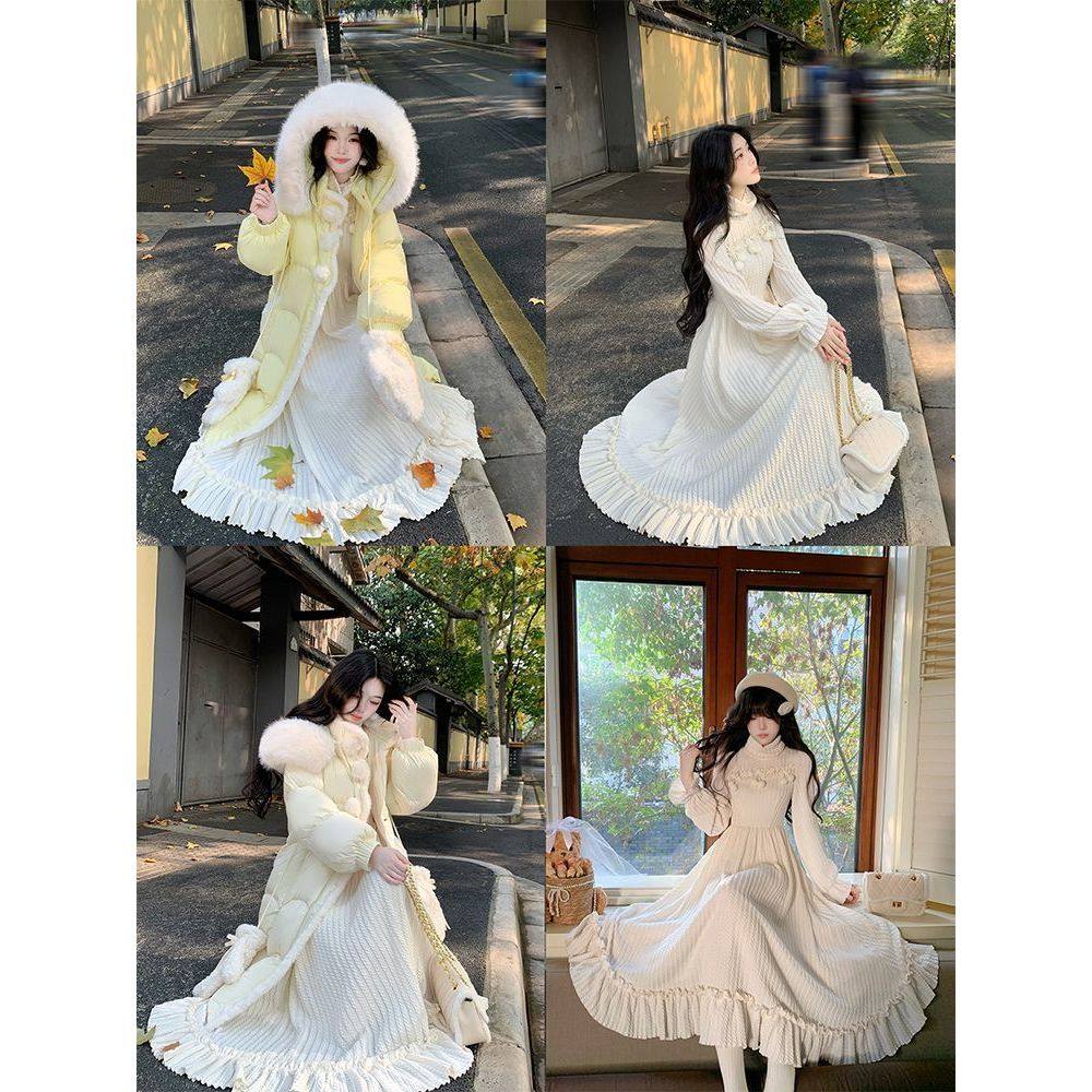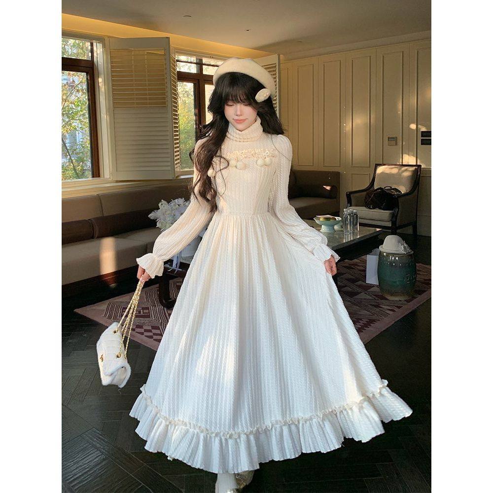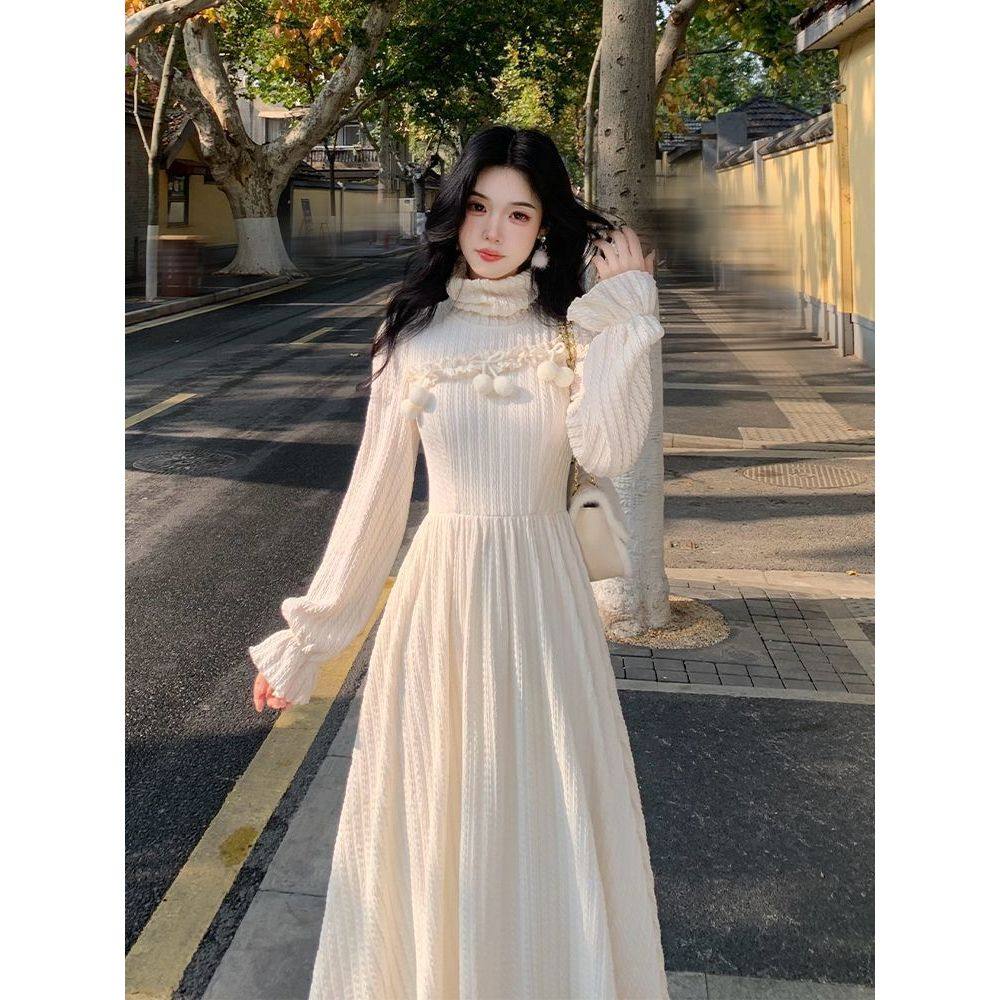 汀兰沐风 温柔风内搭中长裙长袖冬季2025新款大摆设计针织连衣裙