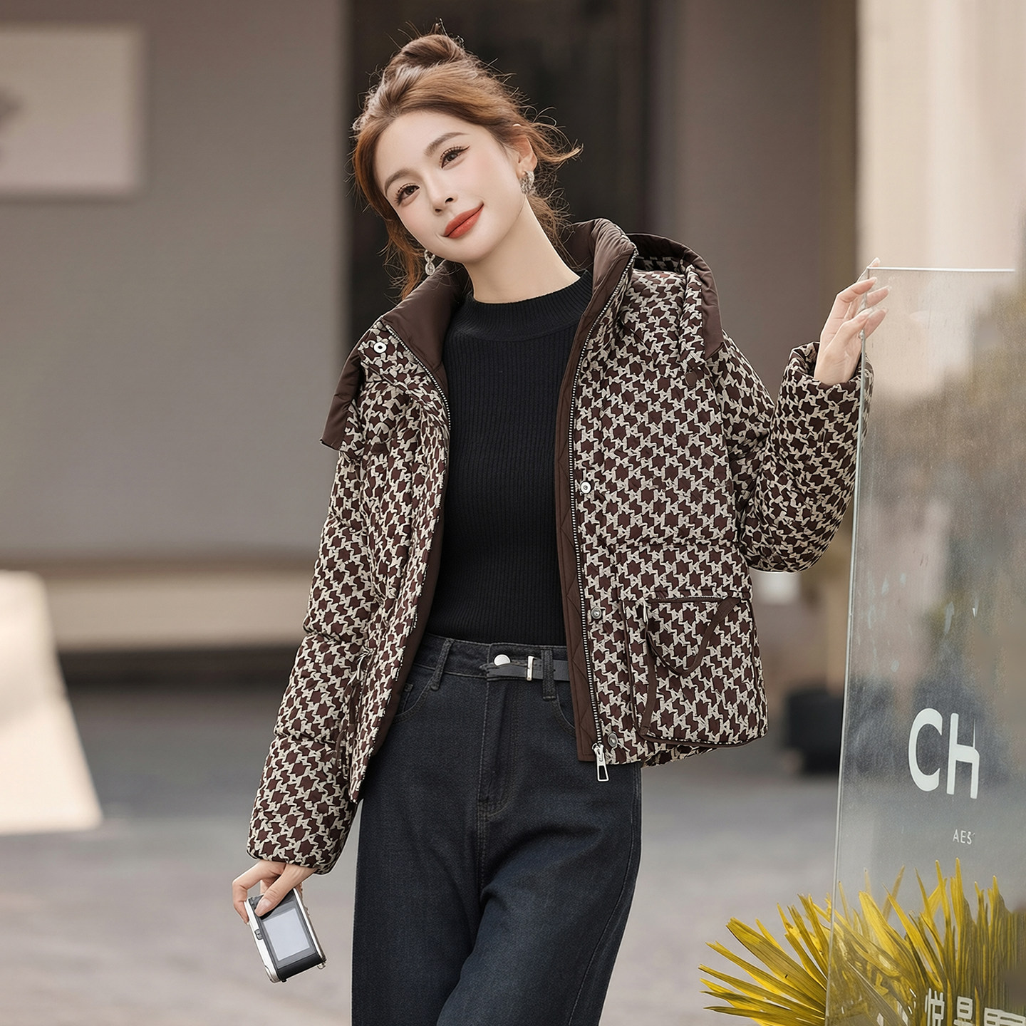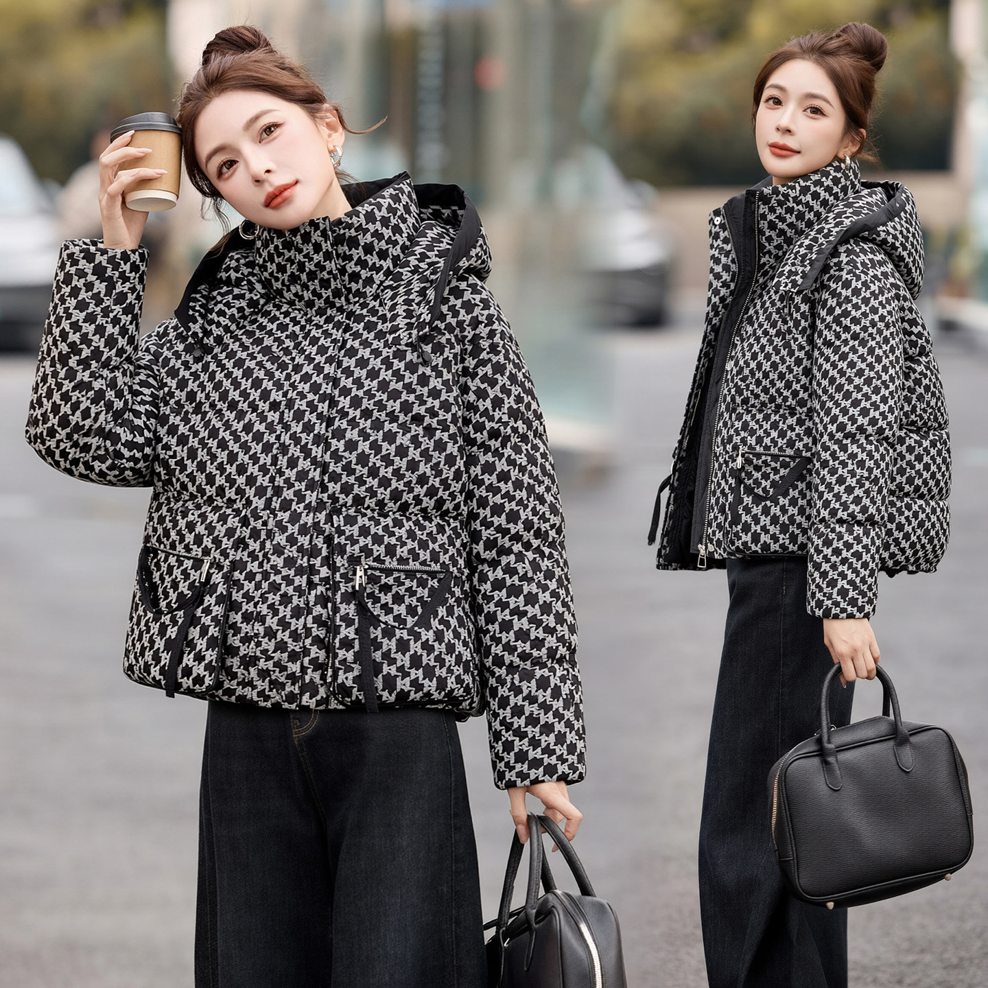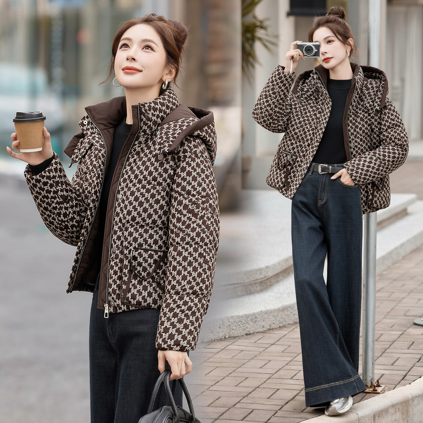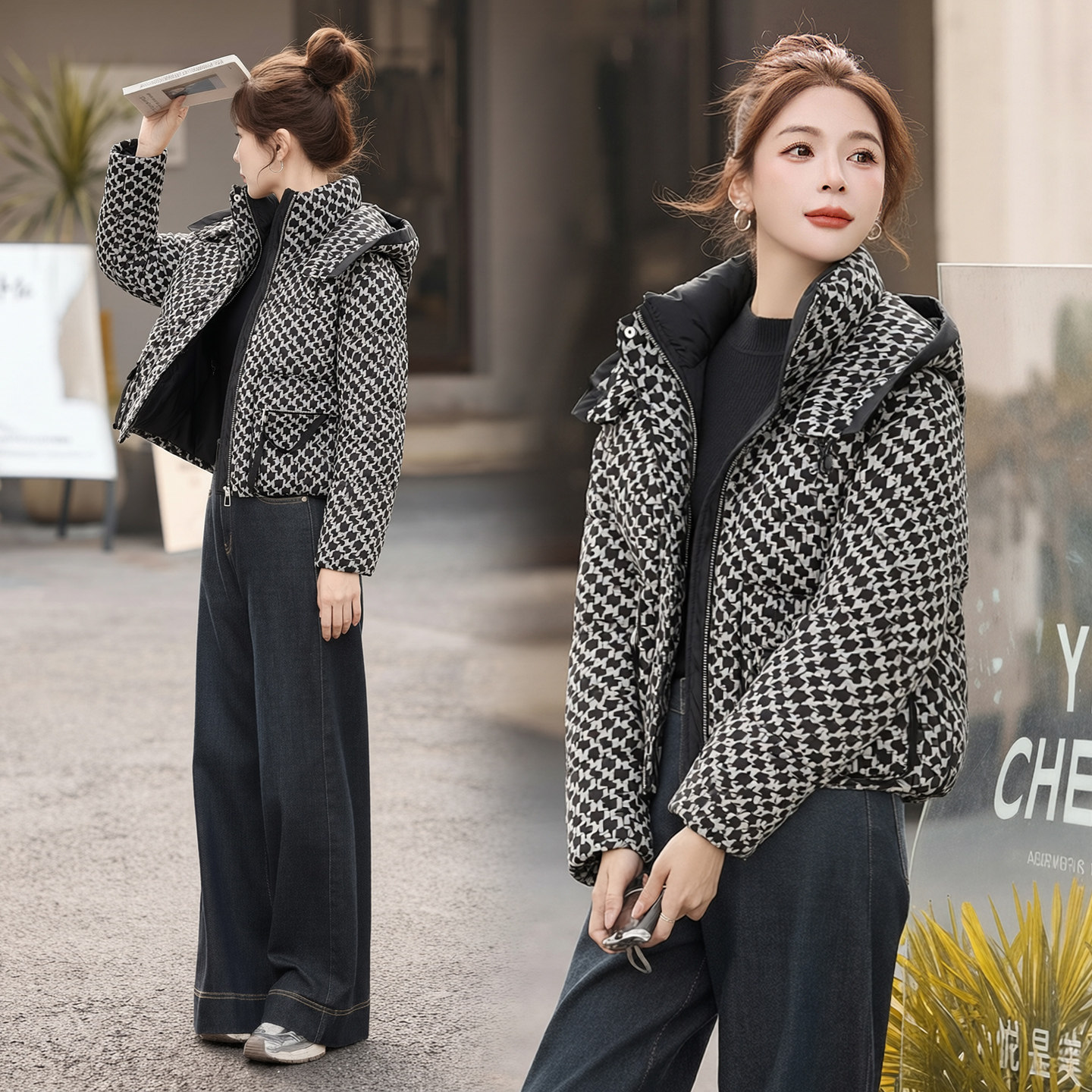 首页> 女装> ERAL艾莱依千鸟格连帽羽绒服女短款韩版洋气减龄加厚保暖外套小个