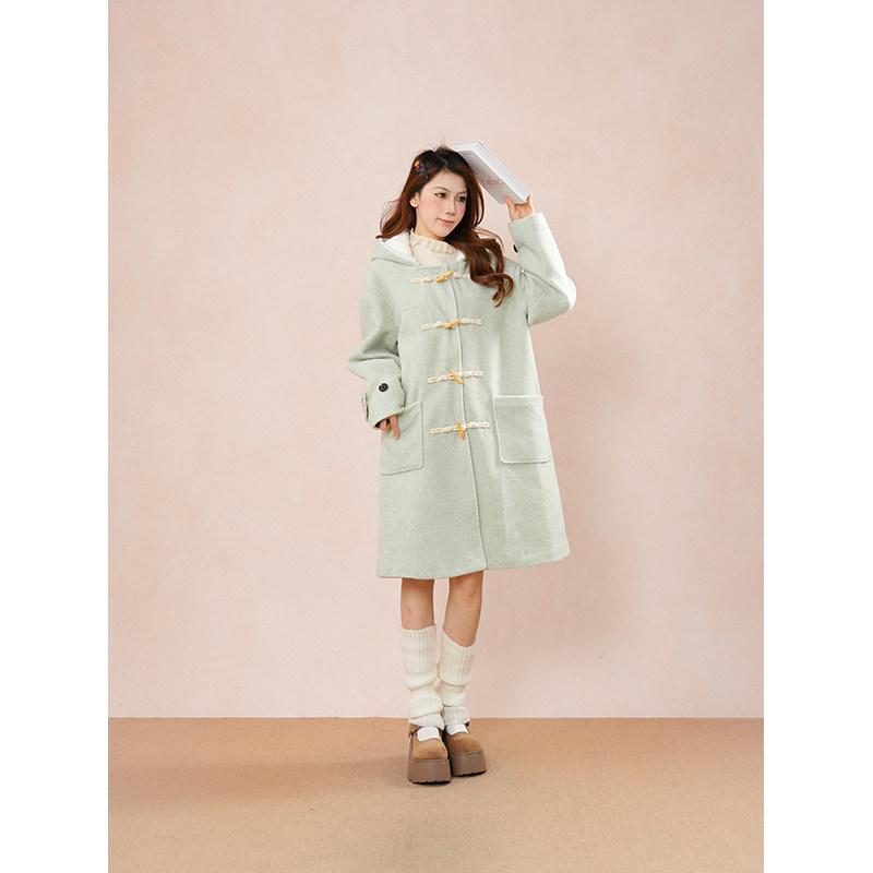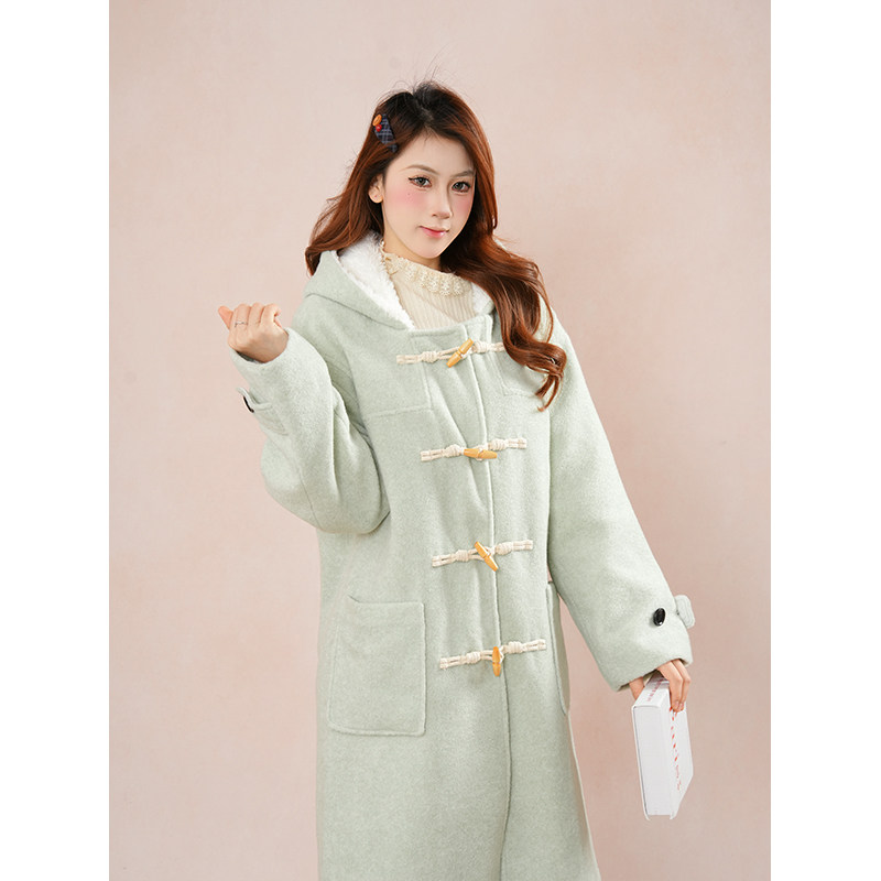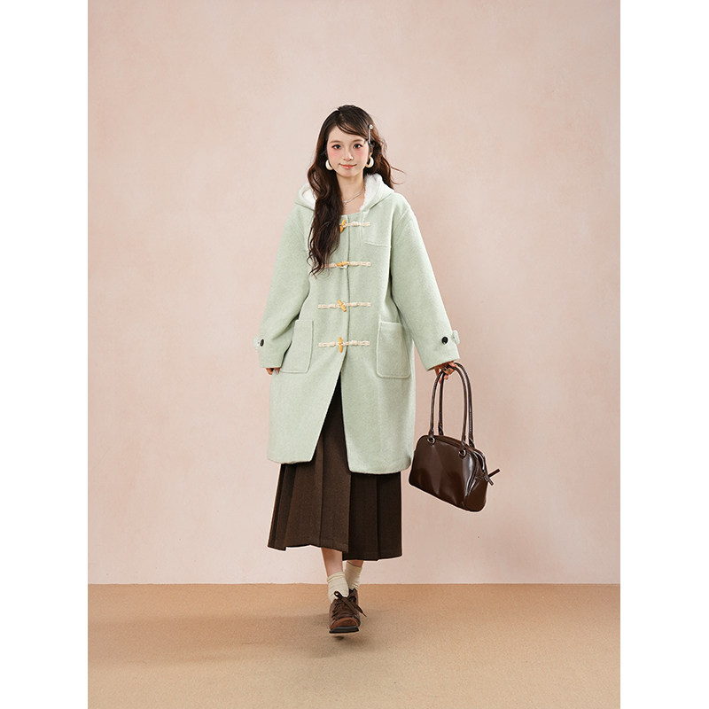 首页> 女装> 薄荷青提 冬季新款日系古早奈奈风设计感连帽中长款毛呢外套大衣