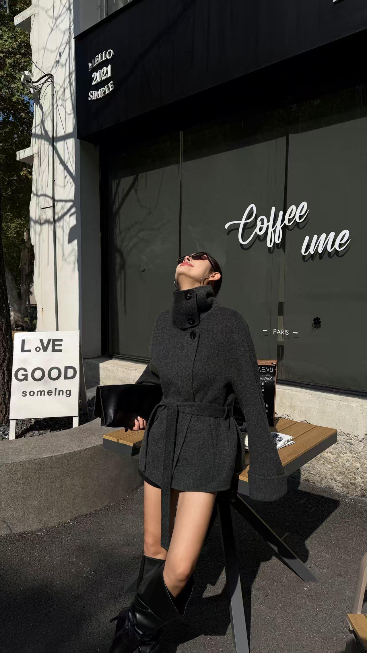 【金敏喜大衣-美鹿莎专属】25128立领中长款韩版大衣