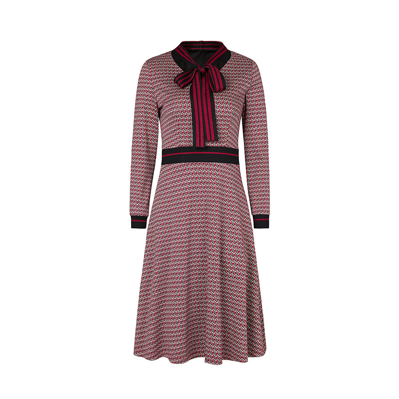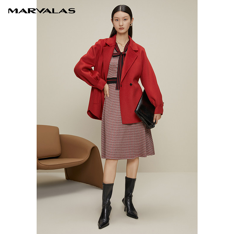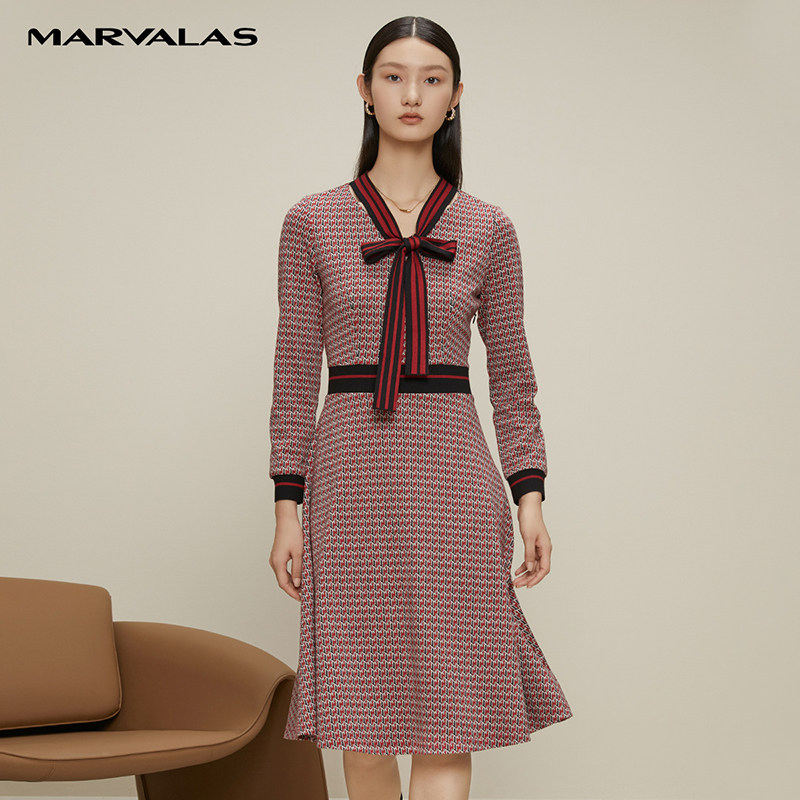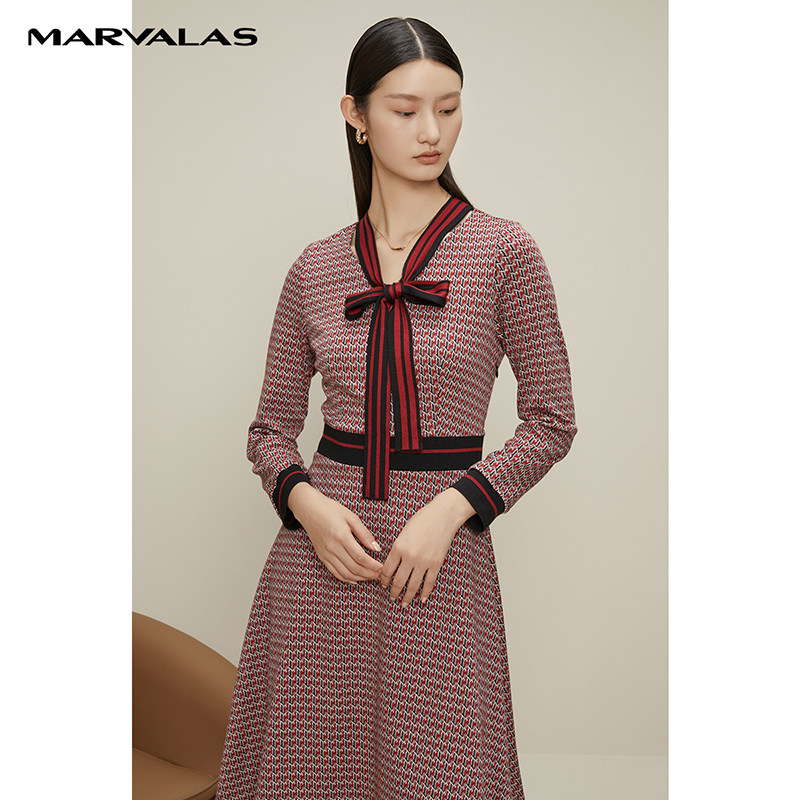 【呼呼严选粉丝专属】曼德诗红花色V领香风针织连衣裙