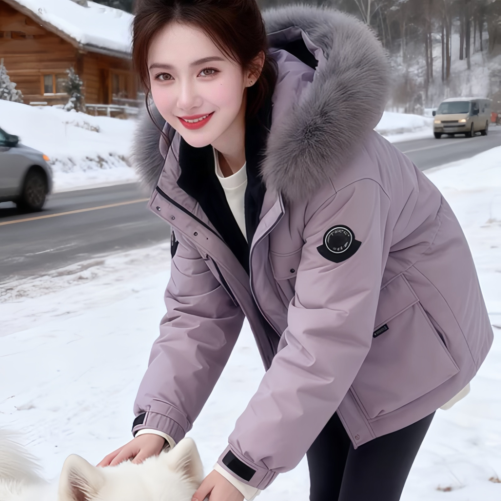 巨好看的冰晶紫工装羽绒棉服女2025冬季新款小个子棉袄派克服外套