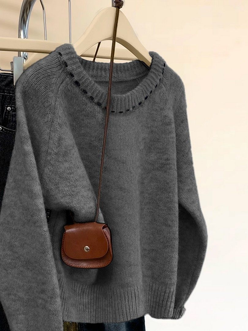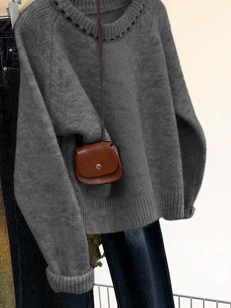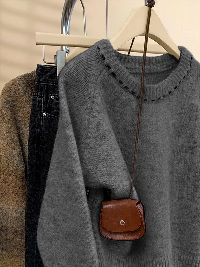 特大码300斤秋冬撞色圆领套头针织毛衣女胖mm外穿宽松慵懒风上衣