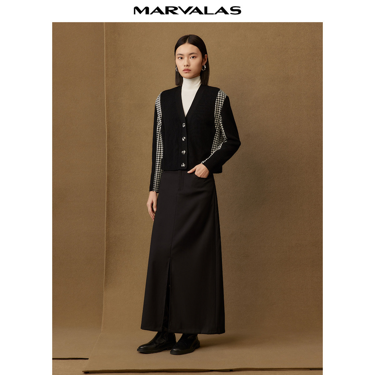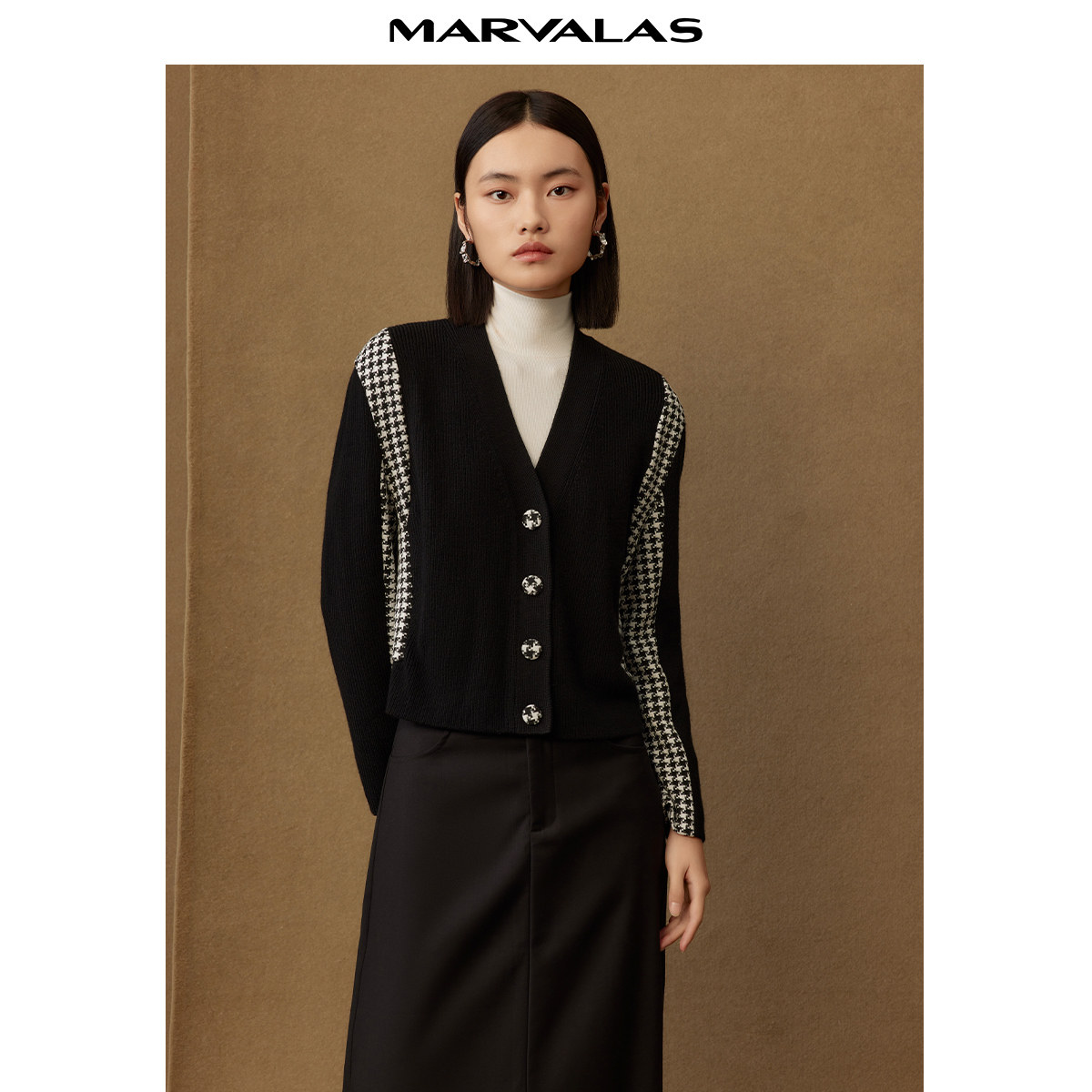 【廖廖粉丝专享】曼德诗短款绵羊毛开衫冬季新款修身