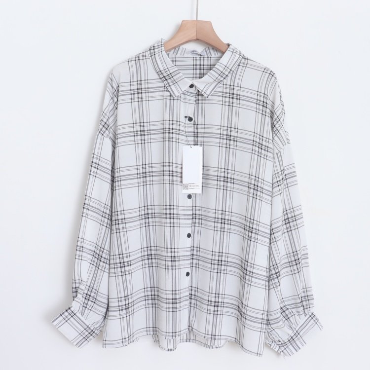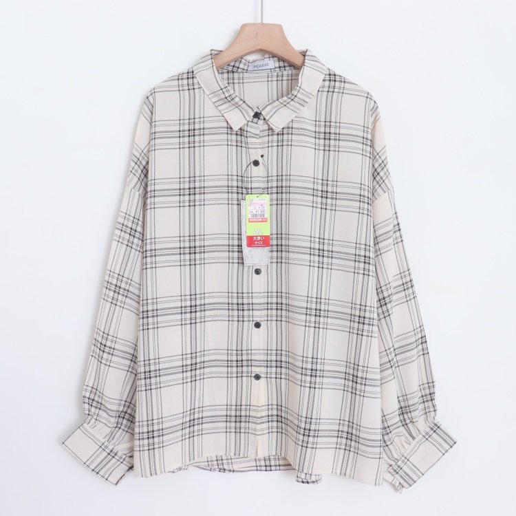 首页> 女装> D090115日单新款单排扣宽松显瘦好搭配女通勤休闲格子长袖衬衫