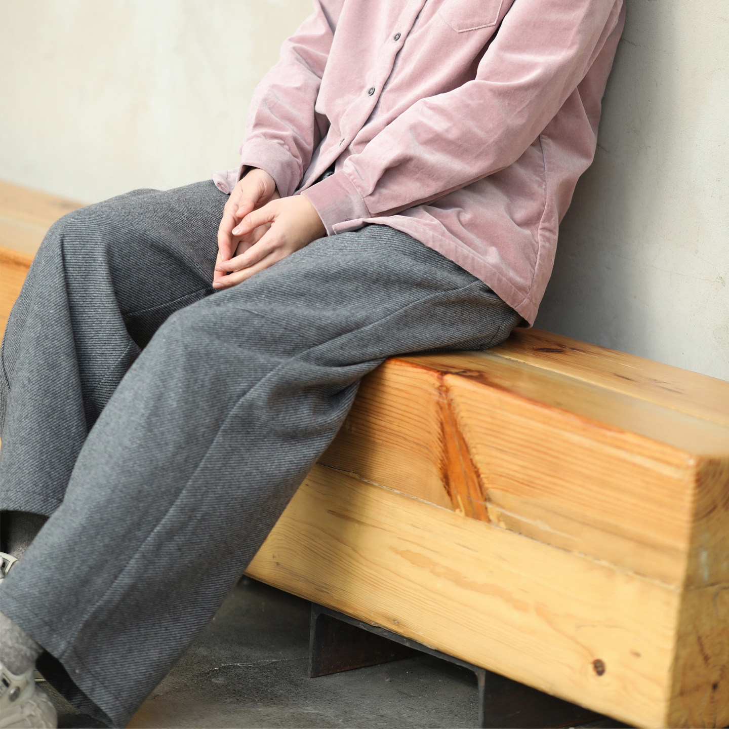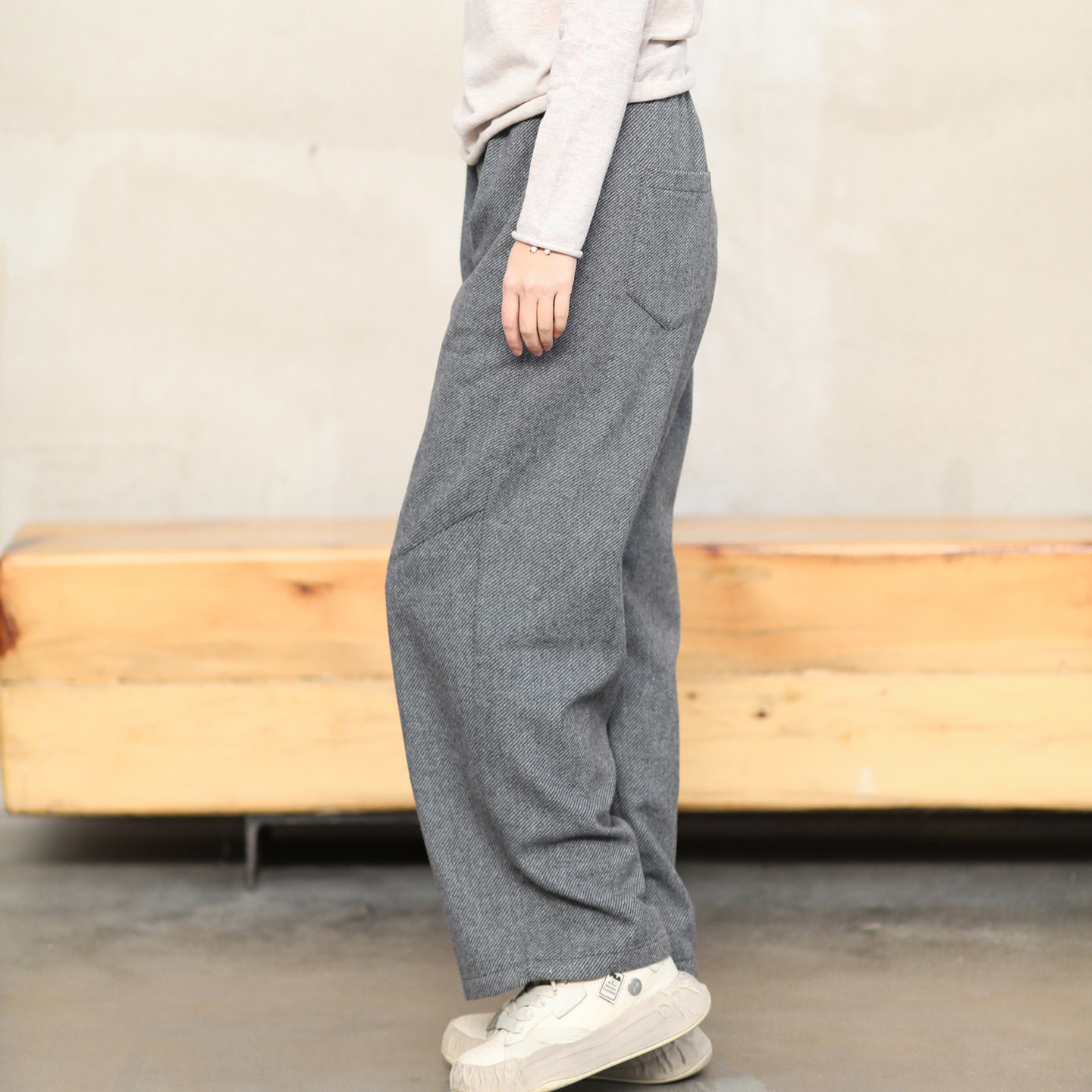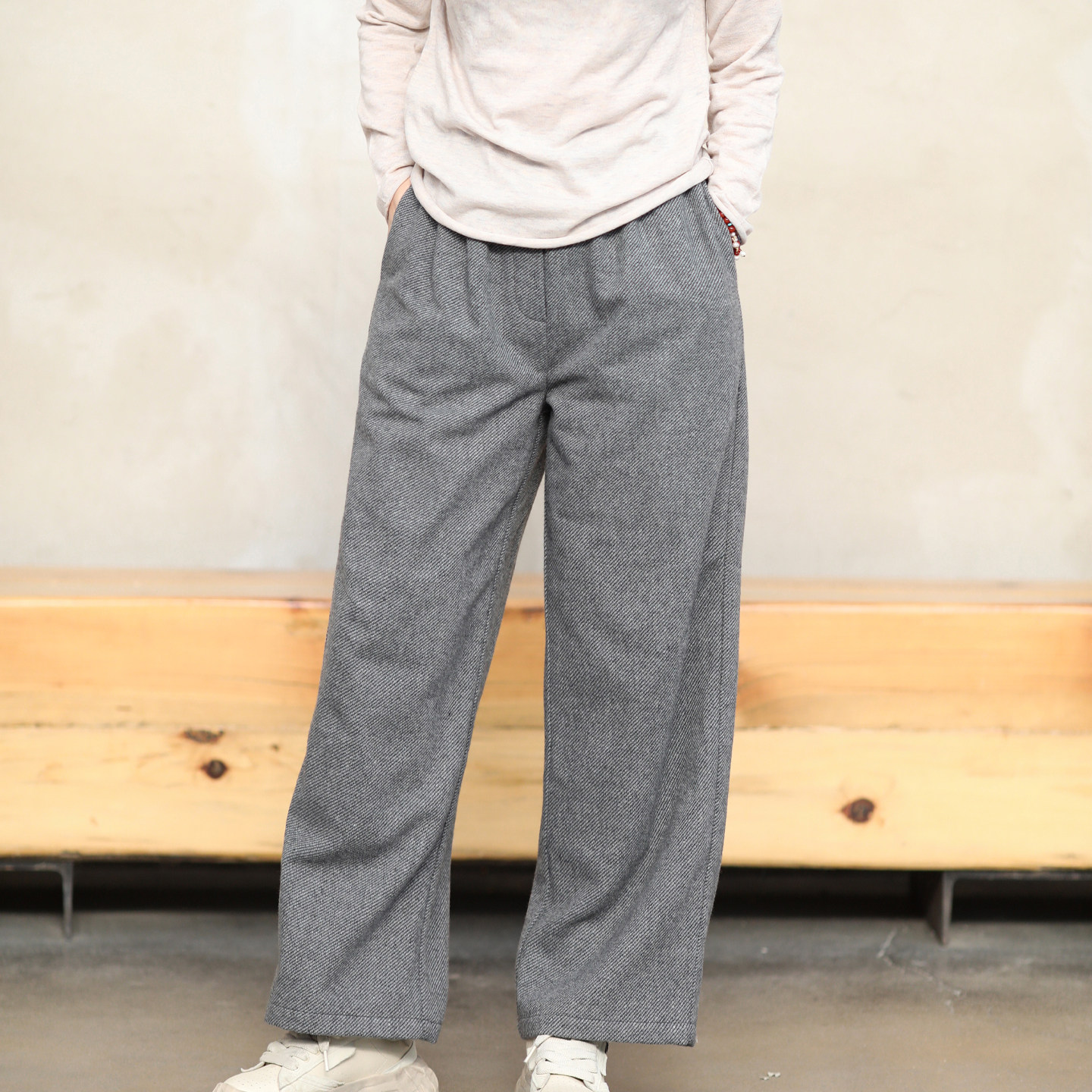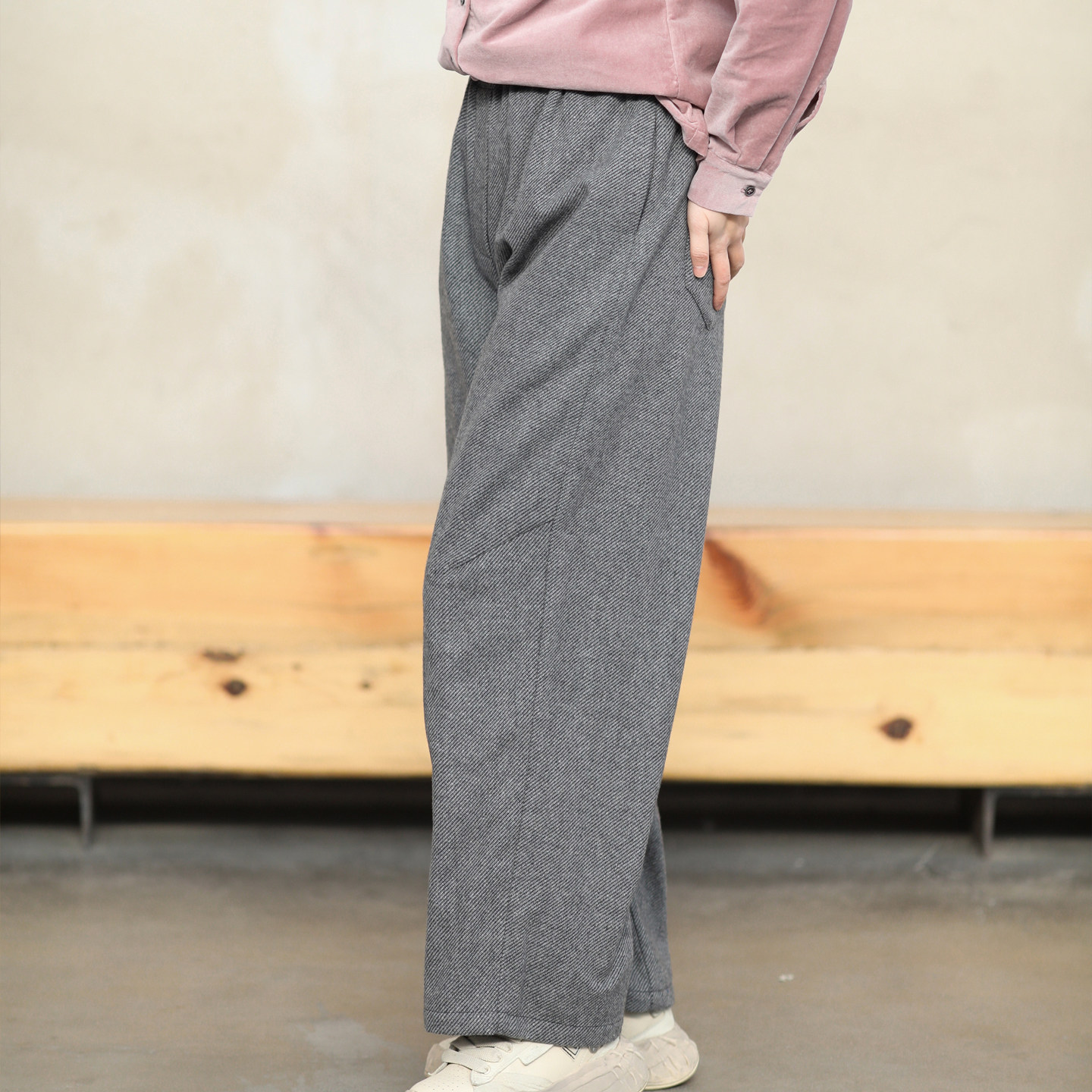 游设计原创宽松加斜纹色织羊毛呢休闲裤阔腿裤长裤 苍峦