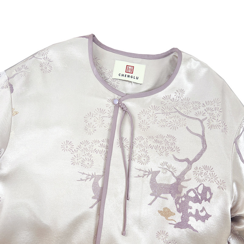 【橙庐】518100原创新中式松鹿提花丝毛夹毛棉服 秋冬女国风外套