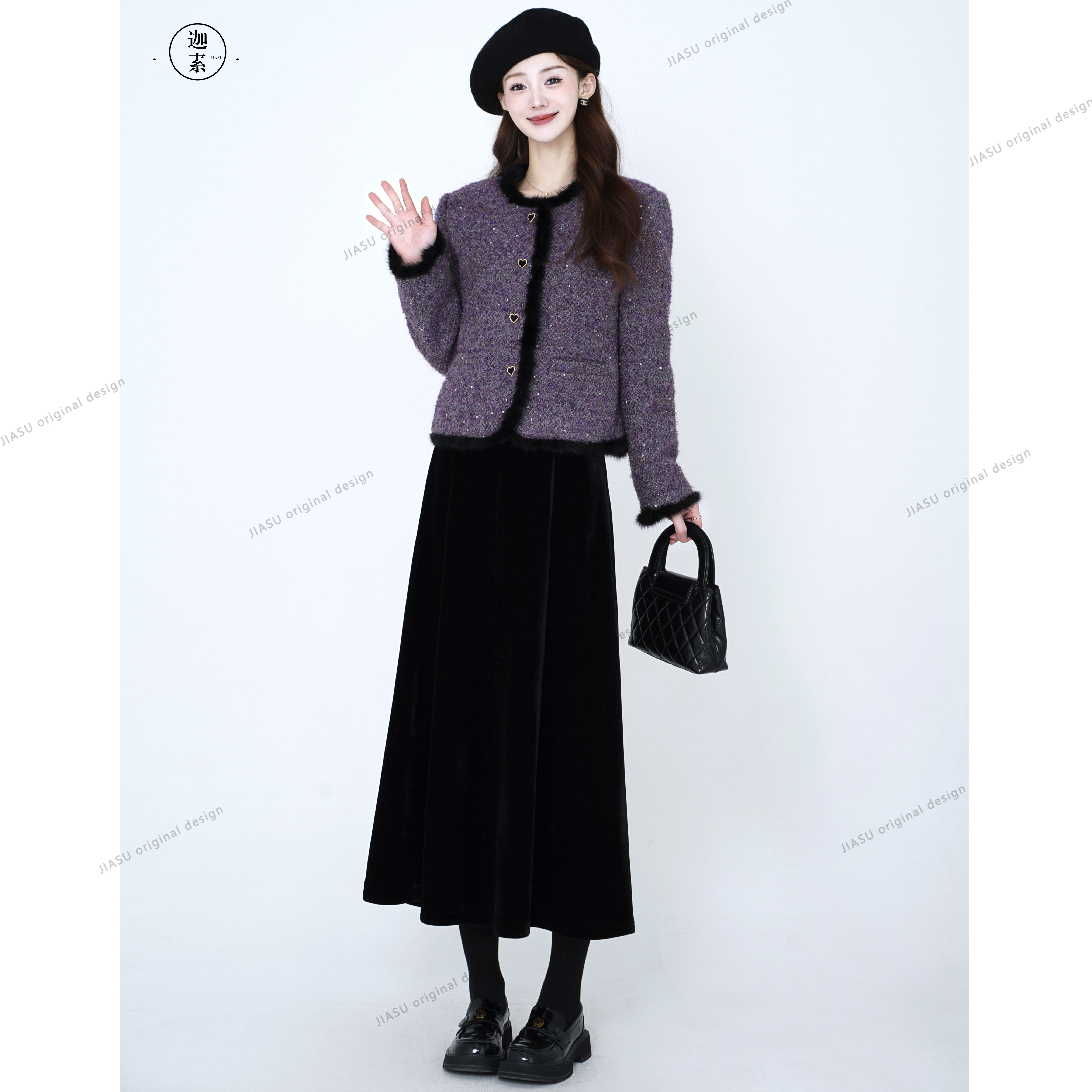 JIASU 【雾绒星织】水貂毛拼边羊毛小香风羽绒套装S606