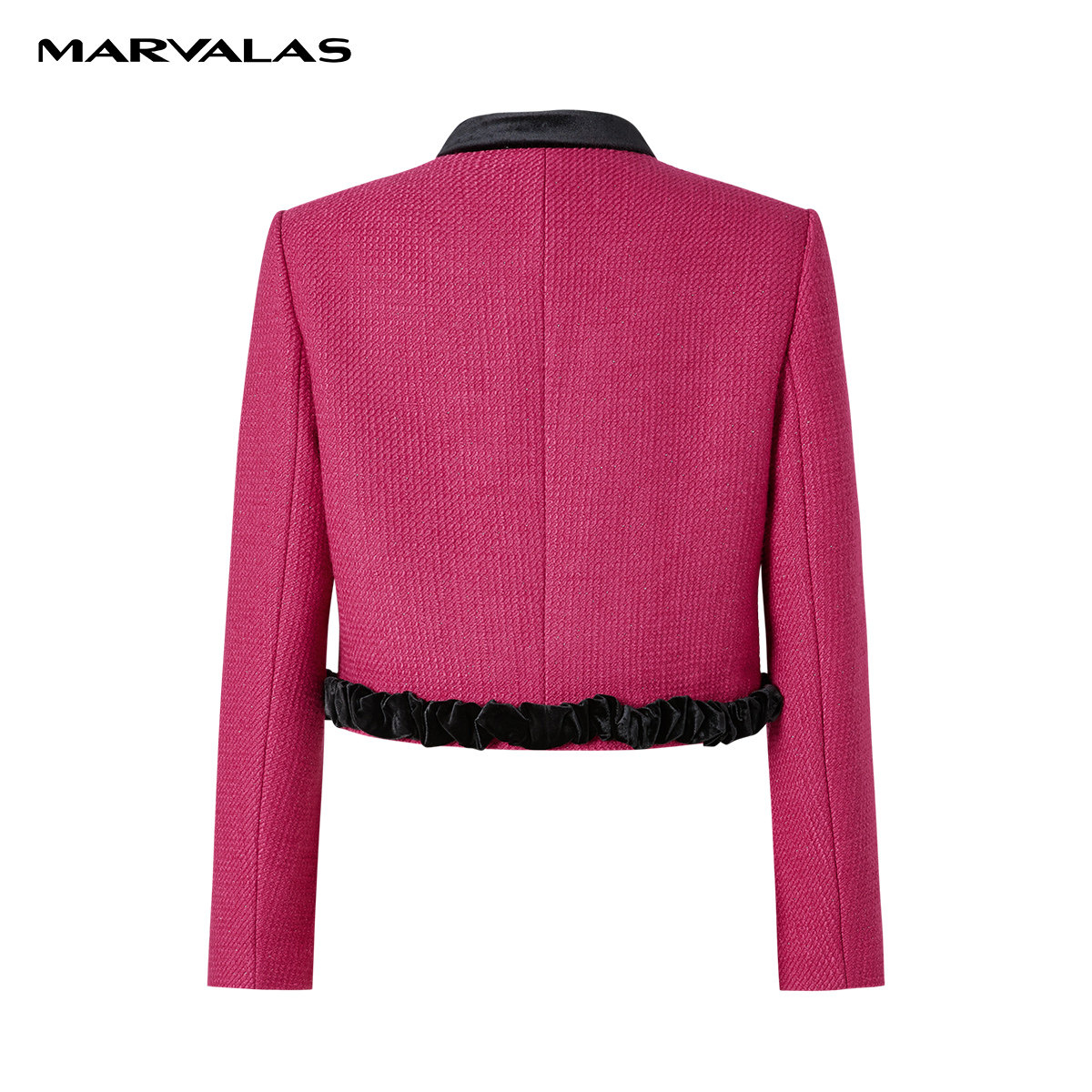 【呼呼严选粉丝专属】时尚撞色小香风外套女夏醋酸料V领短袖气质