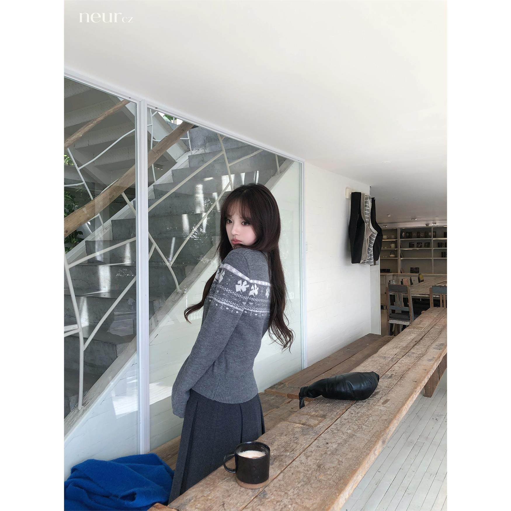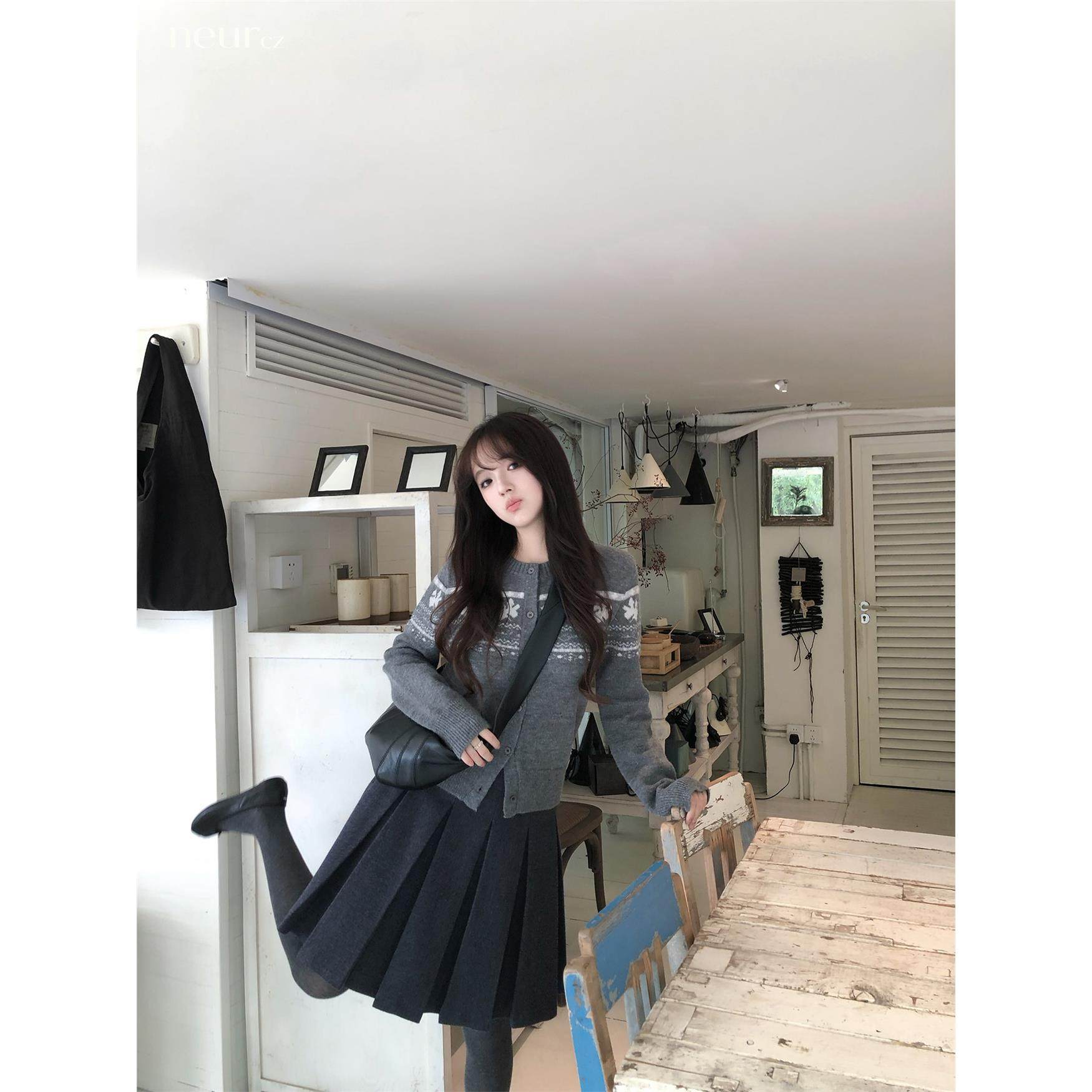 neurcz 圆领开衫短款费尔岛毛衣女秋冬显瘦慵懒风修身开衫上衣装