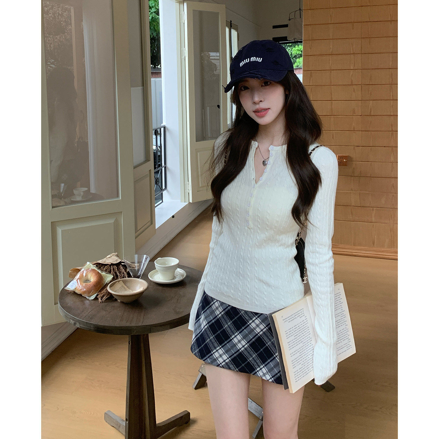morning bloom粉色亨利领麻花针织衫女秋冬穿搭打底内搭上衣毛衣