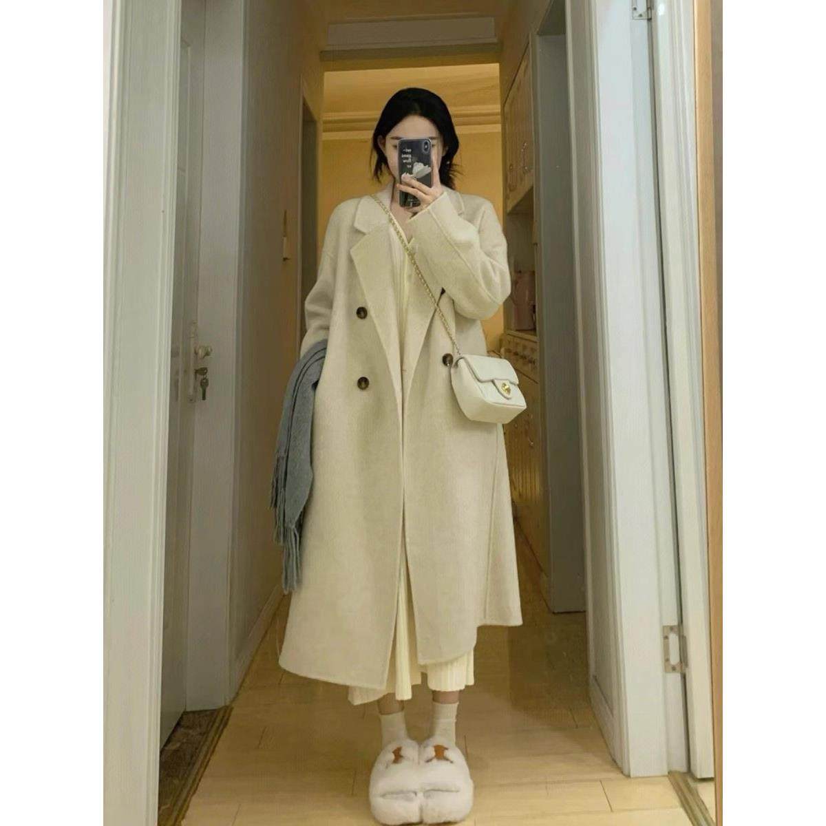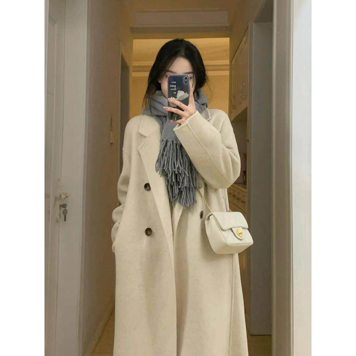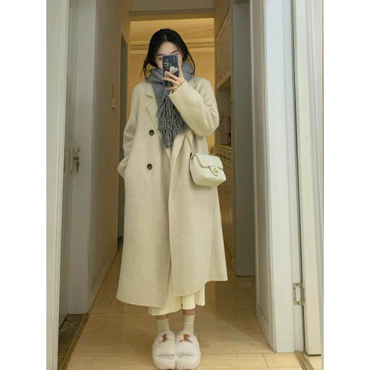 首页> 女装> 欧洲站2024新款燕麦色双面羊绒大衣女羊毛呢子高级感小个子外套