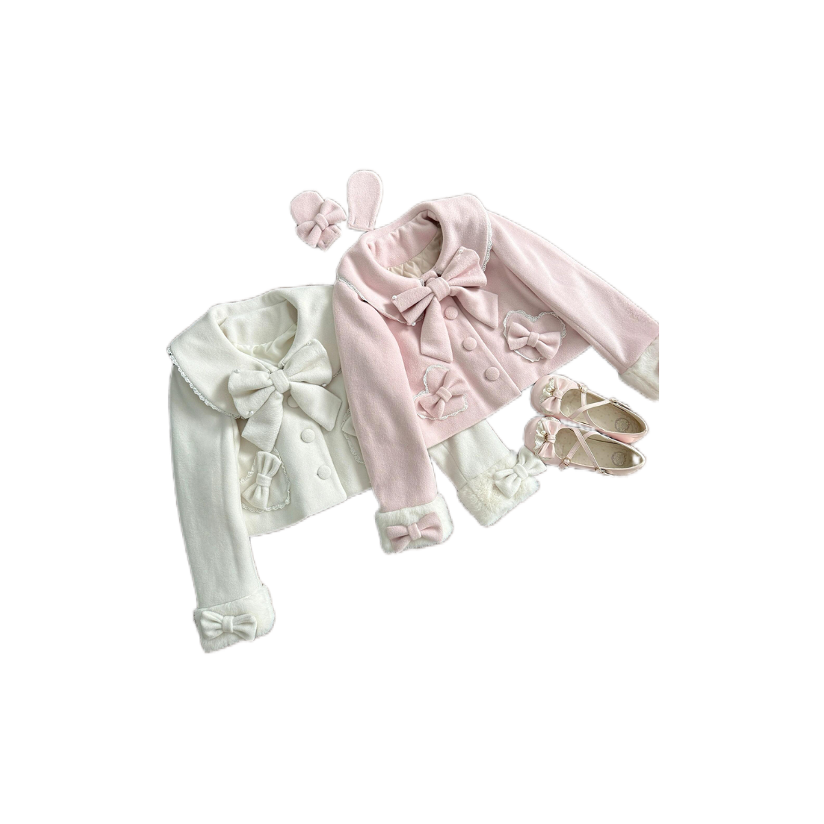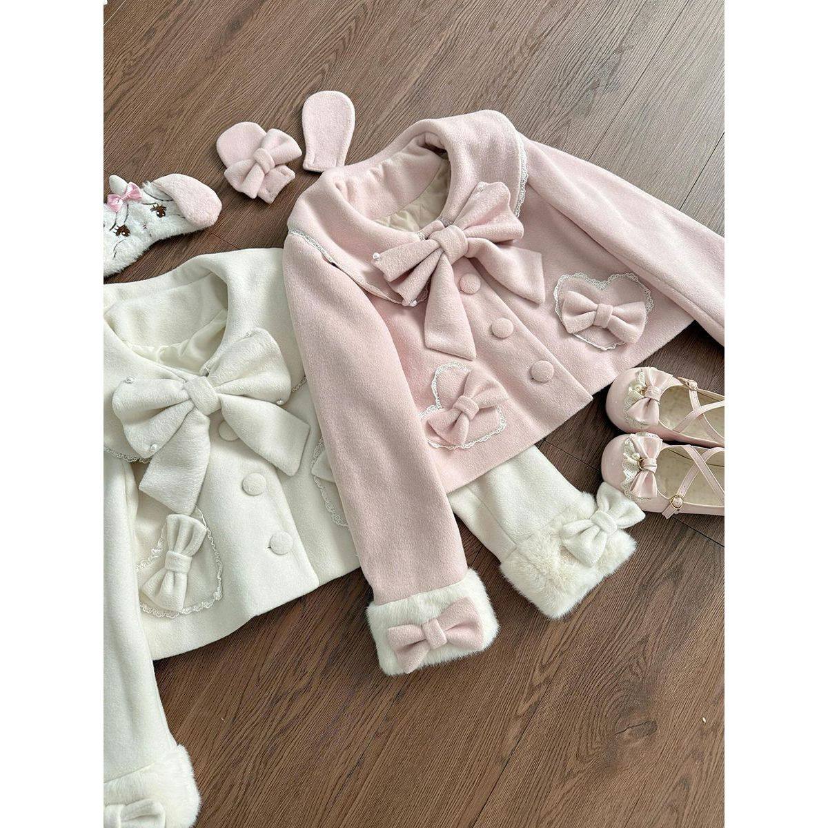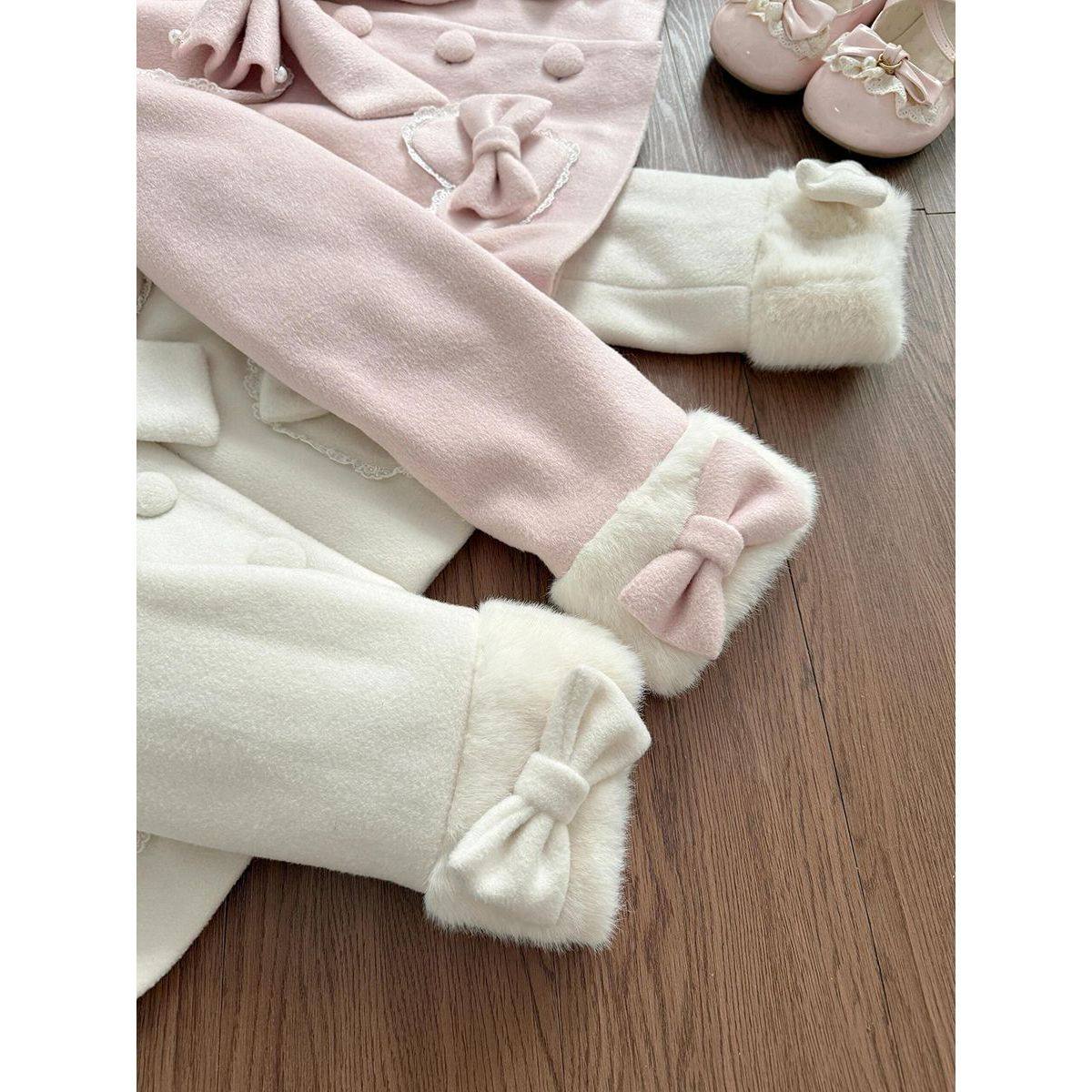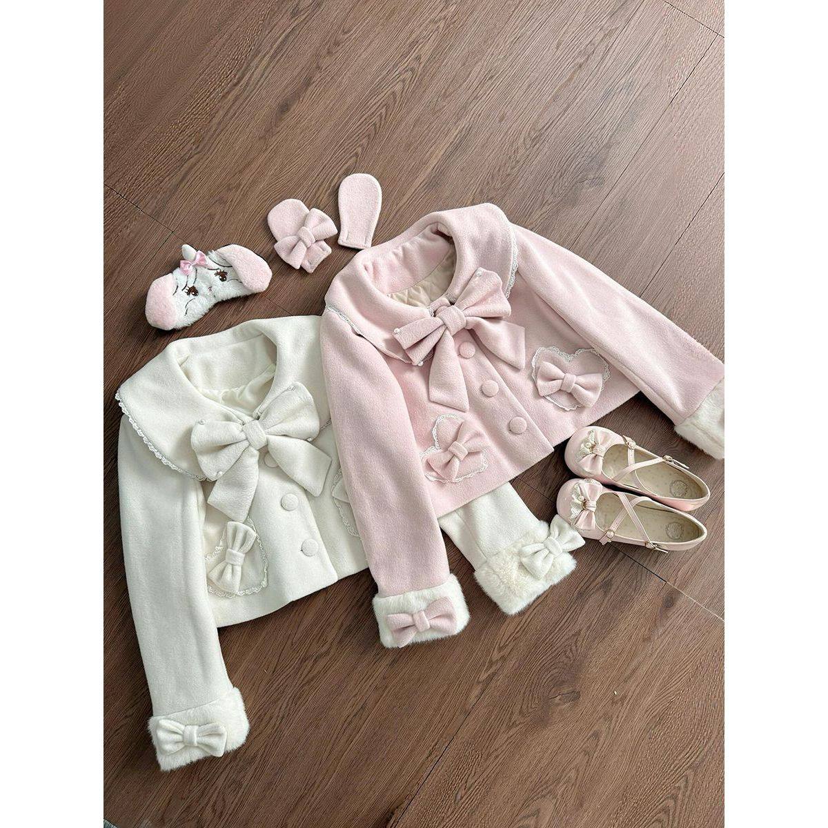 初乳暖调日系小众蝴蝶结毛呢外套学院风甜美小个子短款呢子大衣女