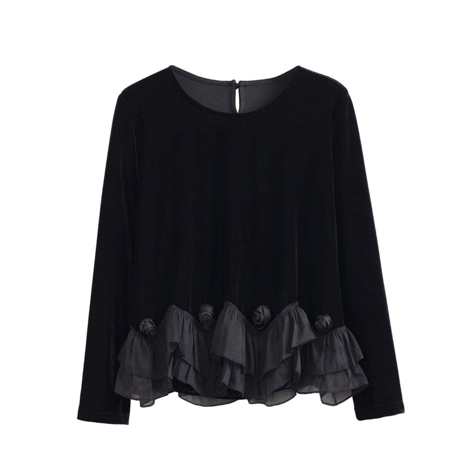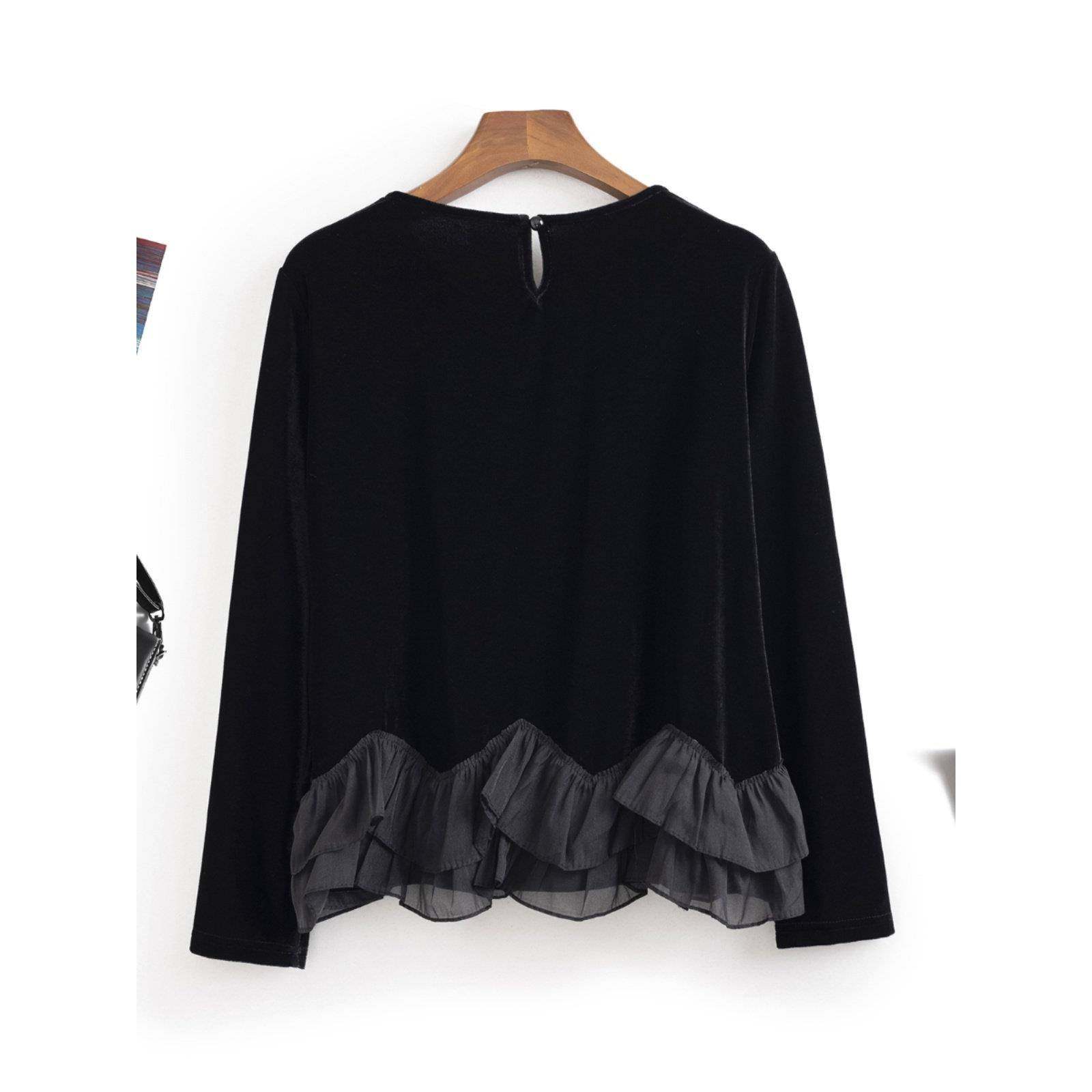 首页> 女装> 高端妈妈装秋冬新款法式小香风花朵荷叶边丝绒小衫减龄打底上衣女