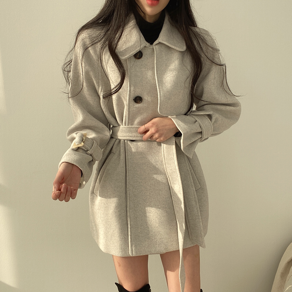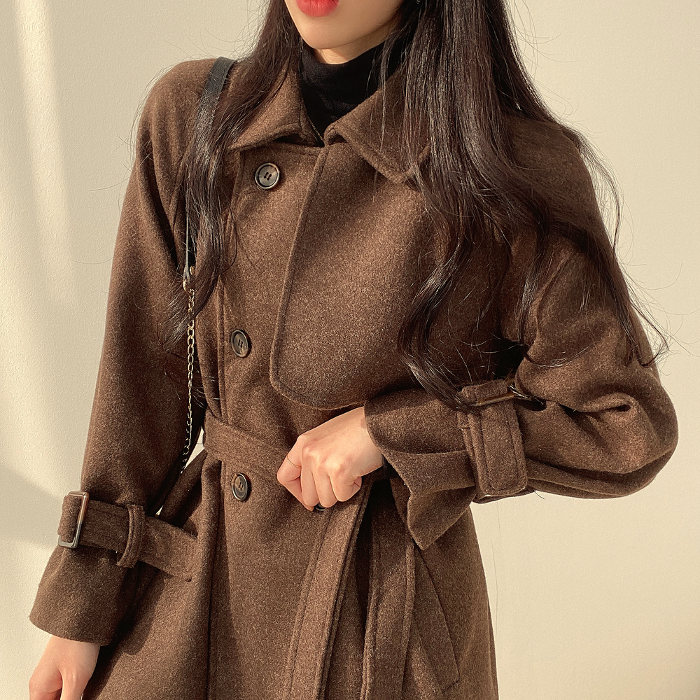 尺寸已更新 chic 秋冬韩版休闲时尚系带复古毛呢外套