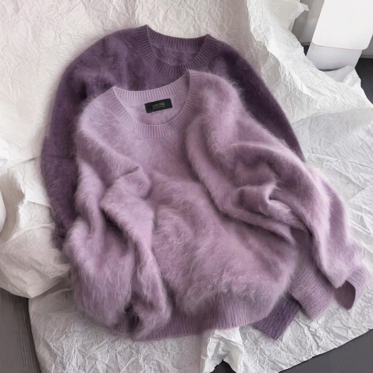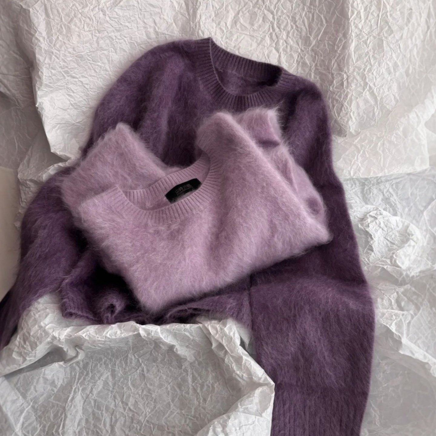 法式温柔紫色套头针织海马毛毛衣女冬季内搭可外穿慵懒高级感上衣