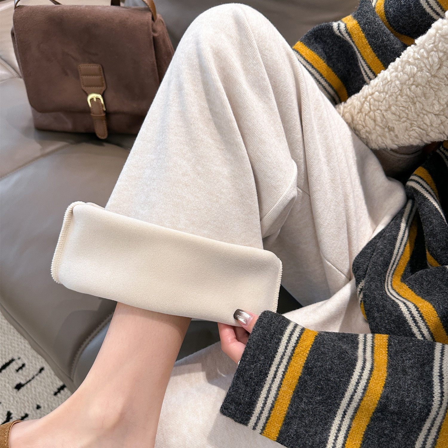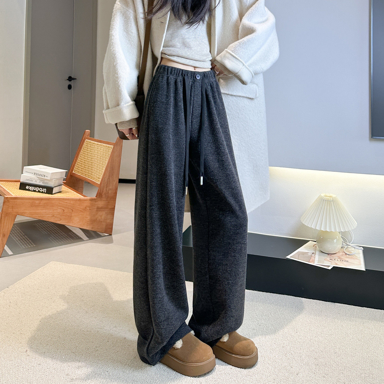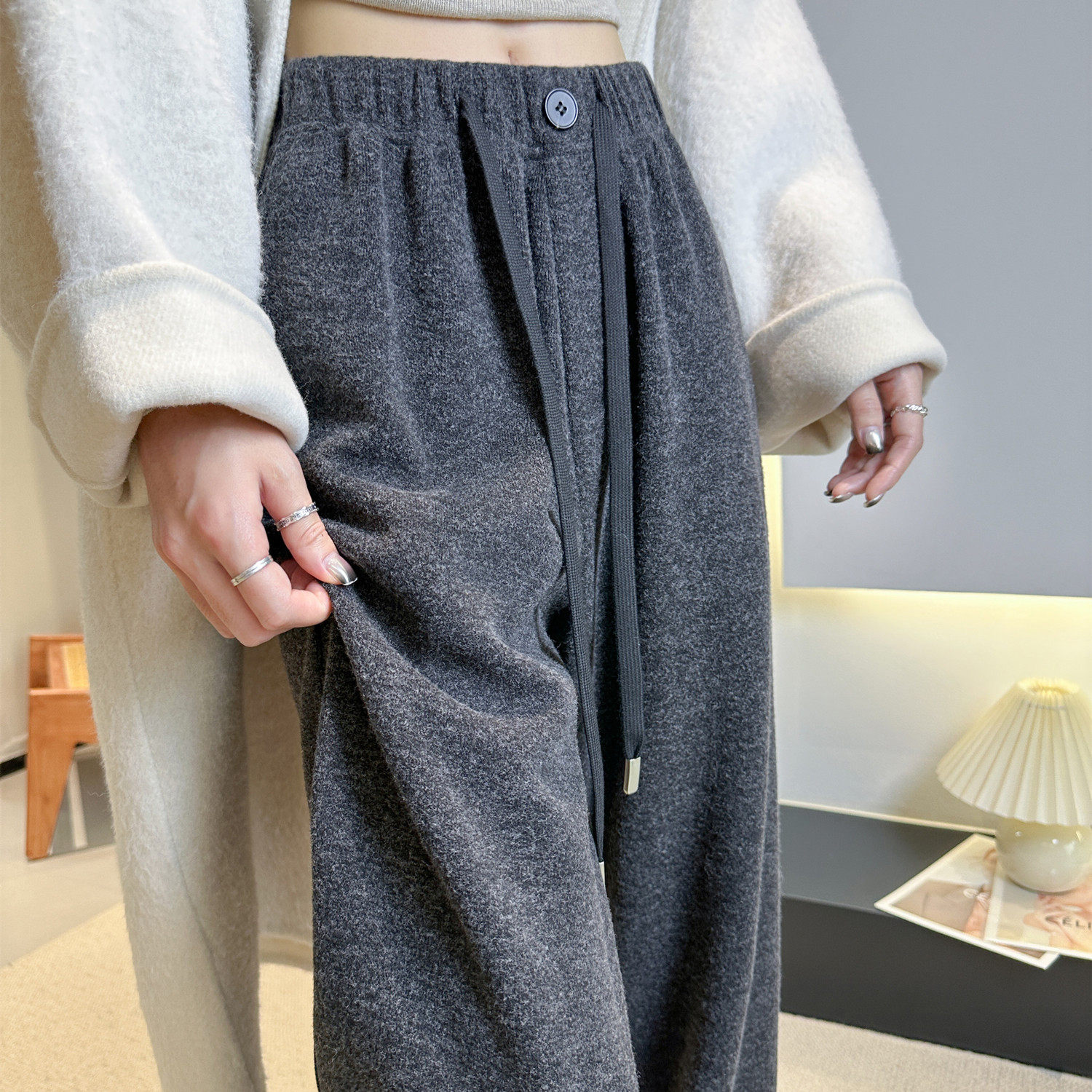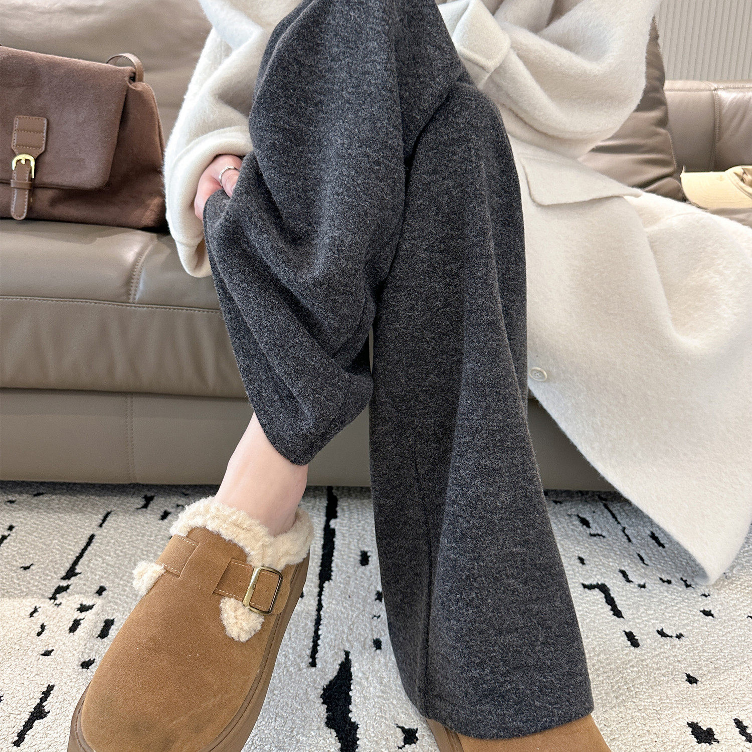 灰色加绒糯米阔腿裤女秋冬高腰宽松bf慵懒风休闲加厚羊毛呢直筒裤