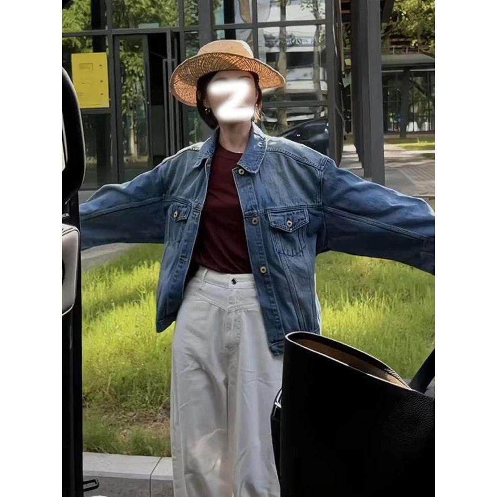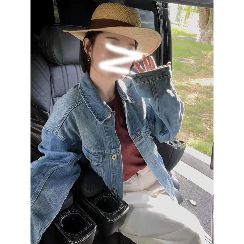 法国Rouje Dsyle覆古蓝色牛仔短外套女士秋季宽松设计感夹克上衣
