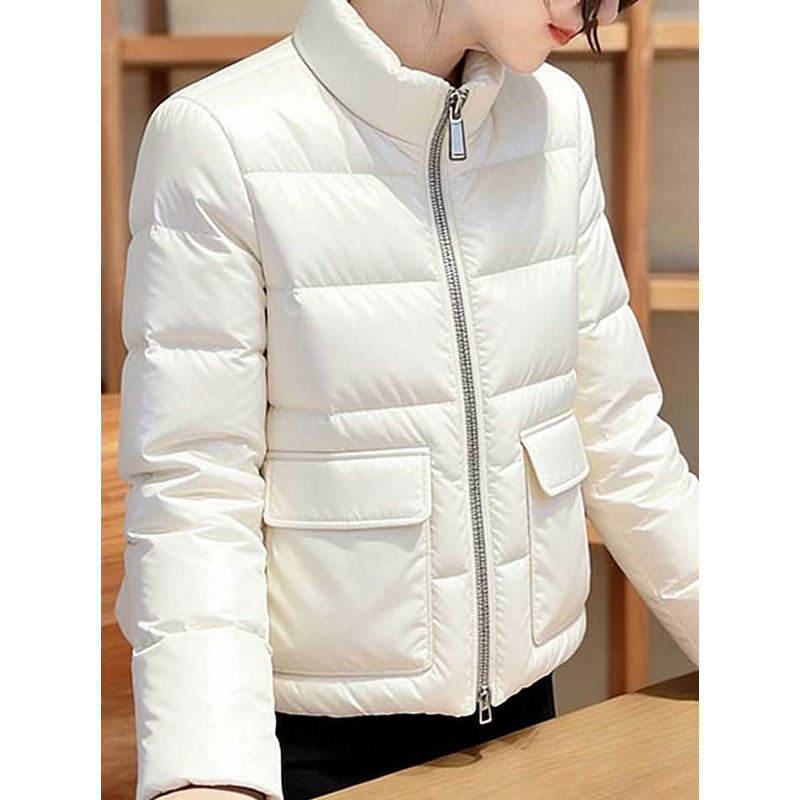 巨好看的冬装外套2026新款白色立领拉链加厚保暖显瘦棉服外套女