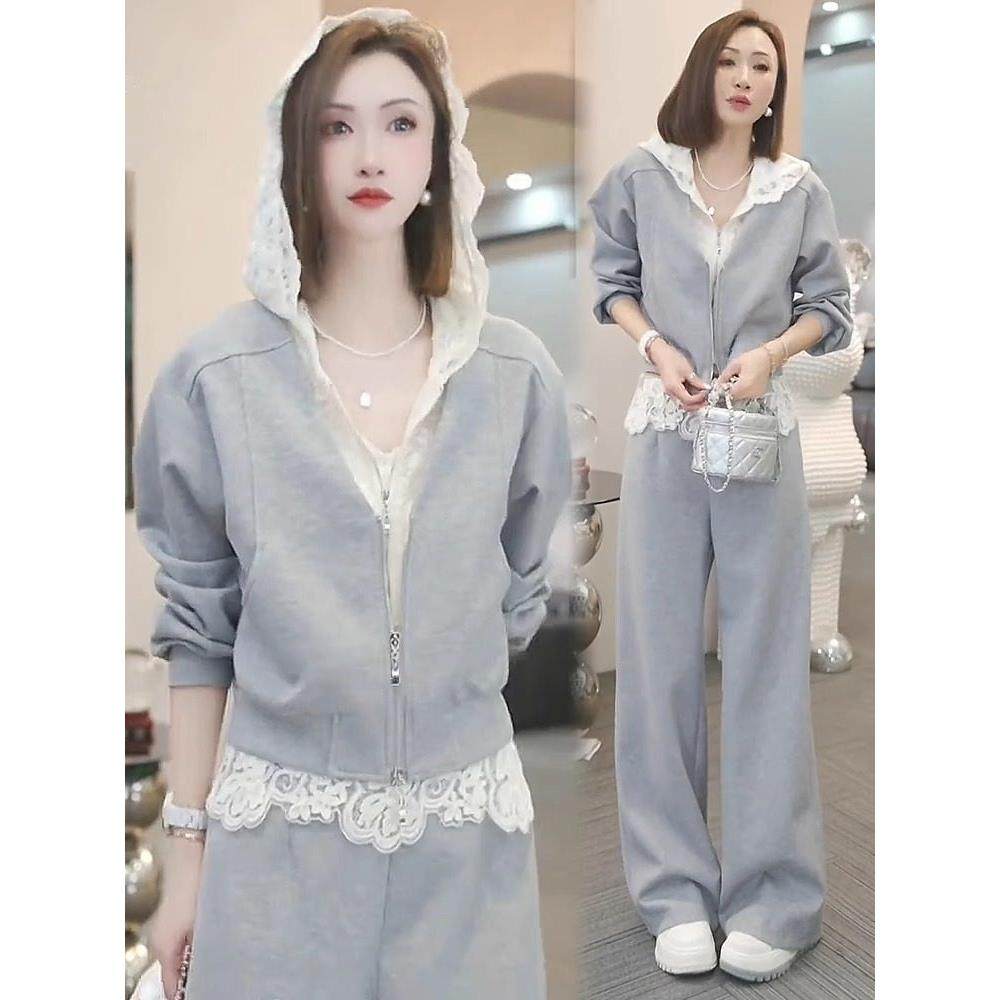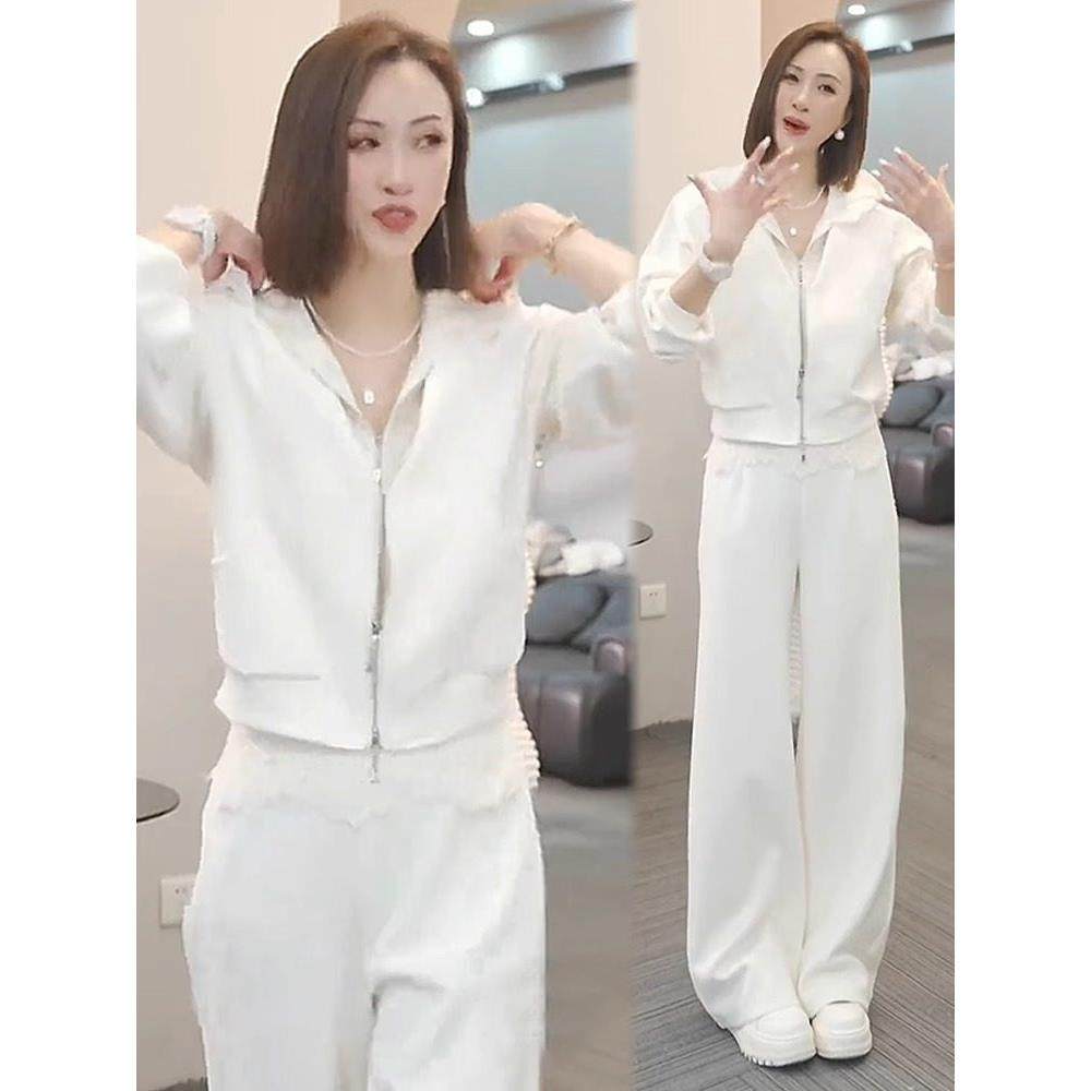 香港代购时尚休闲运动套装女春季新款拼接假两件外套阔腿裤两件套