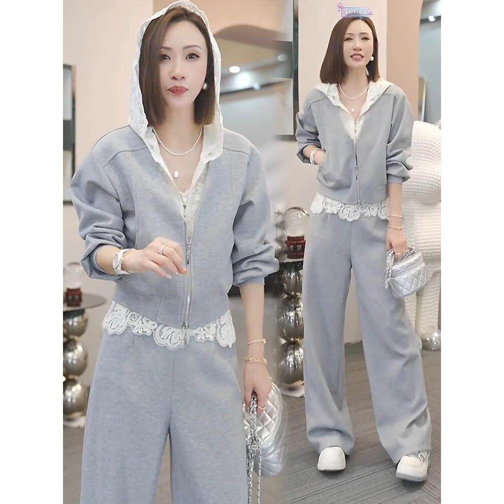 首页> 女装> 香港代购时尚休闲运动套装女春季新款拼接假两件外套阔腿裤两件套