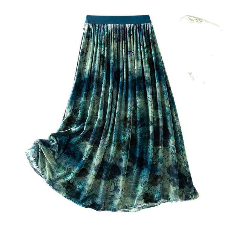 大码女装半身长裙时尚印花OL气质真丝裙夏季新款85125