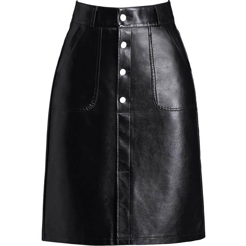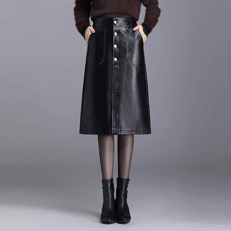 时尚皮裙半身裙女2024秋冬新款高腰A字裙显瘦包臀裙开叉一步长裙