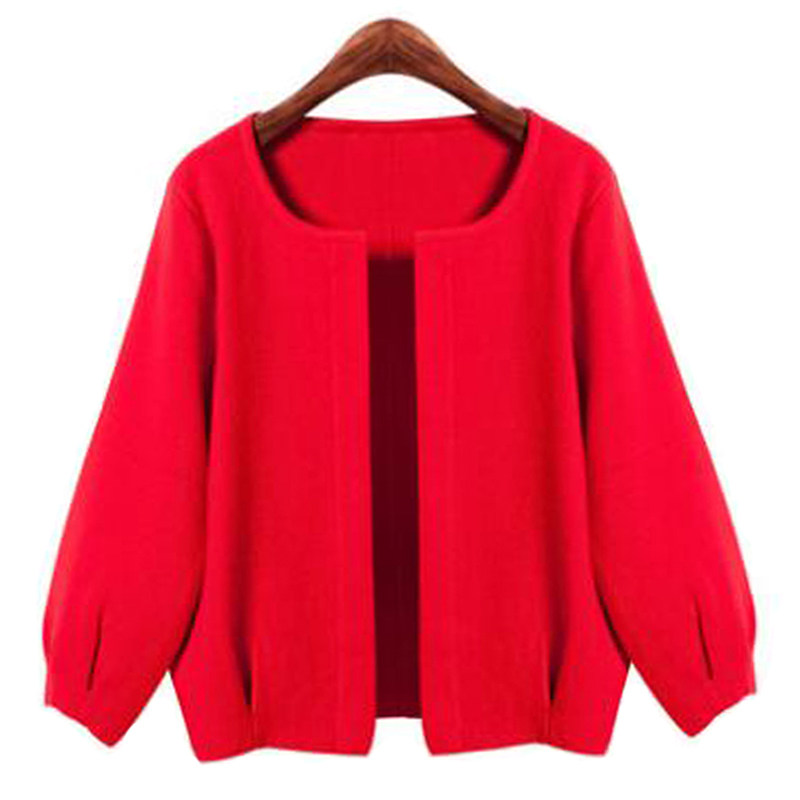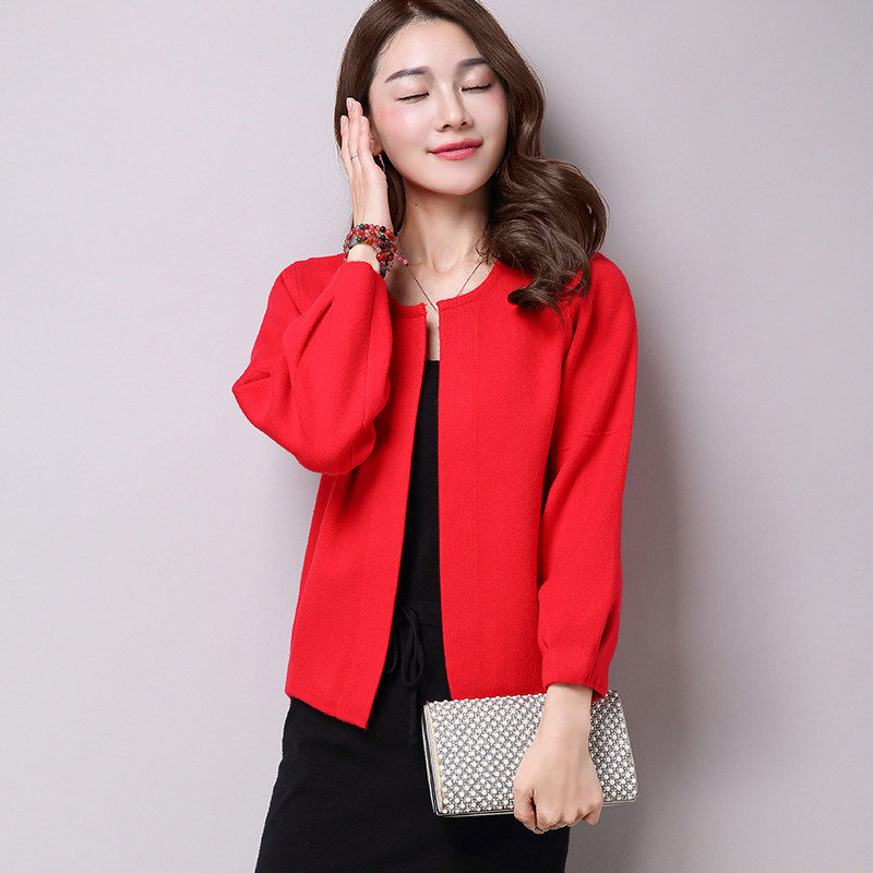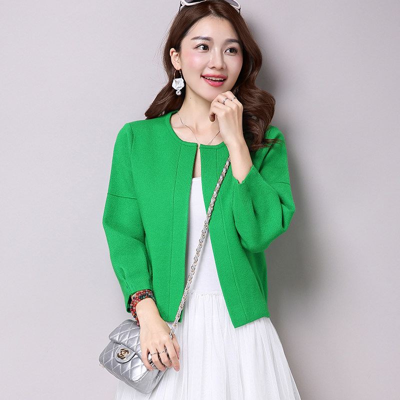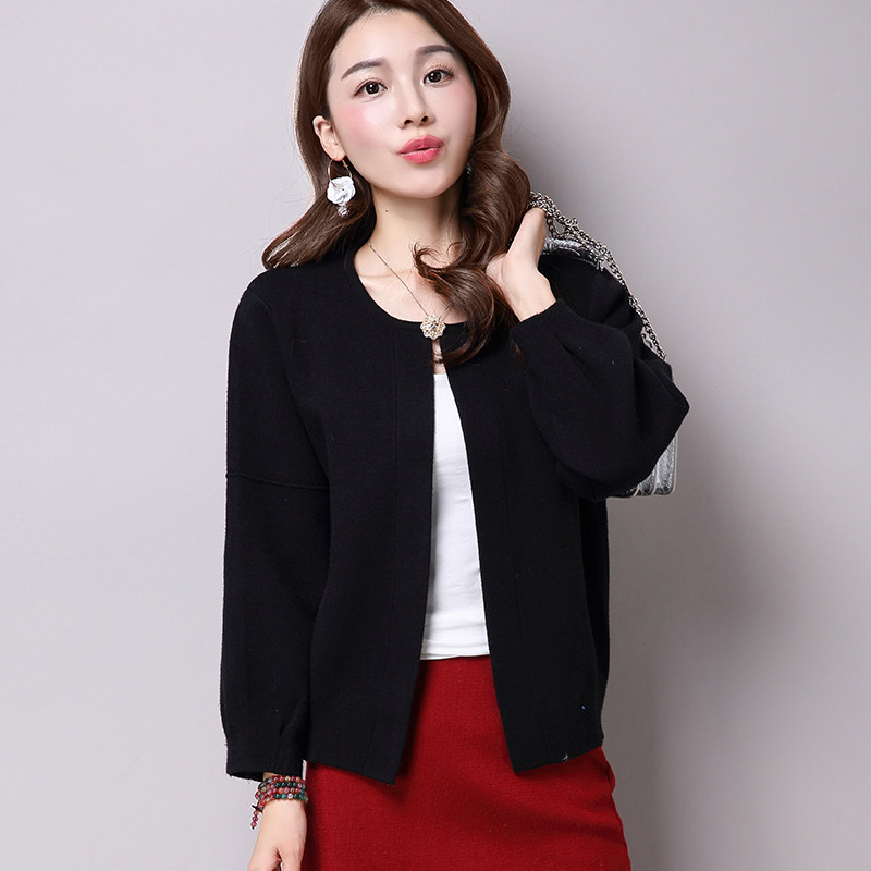 春秋新款纯色短款针织开衫女装外搭上衣宽松百搭毛衣灯笼袖小外套