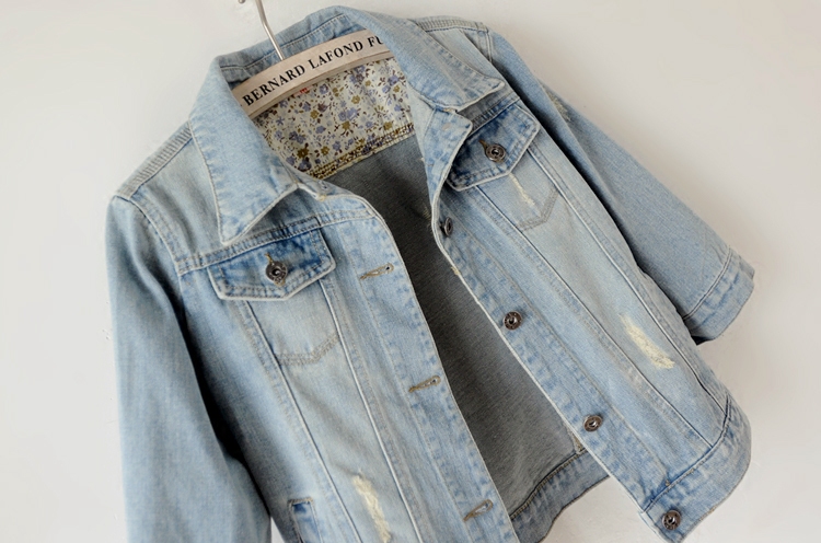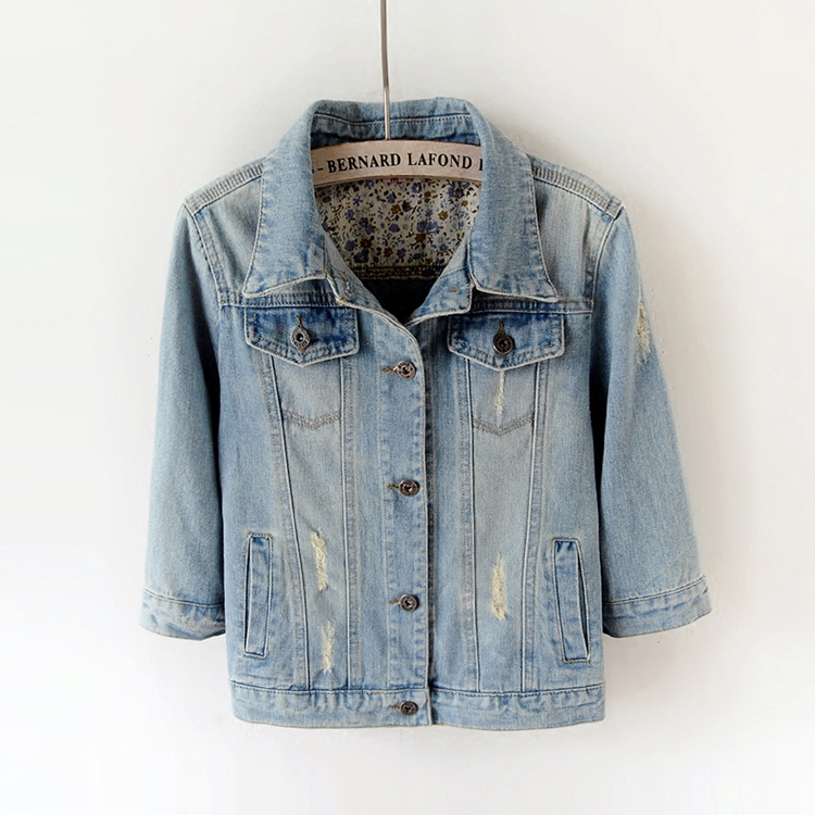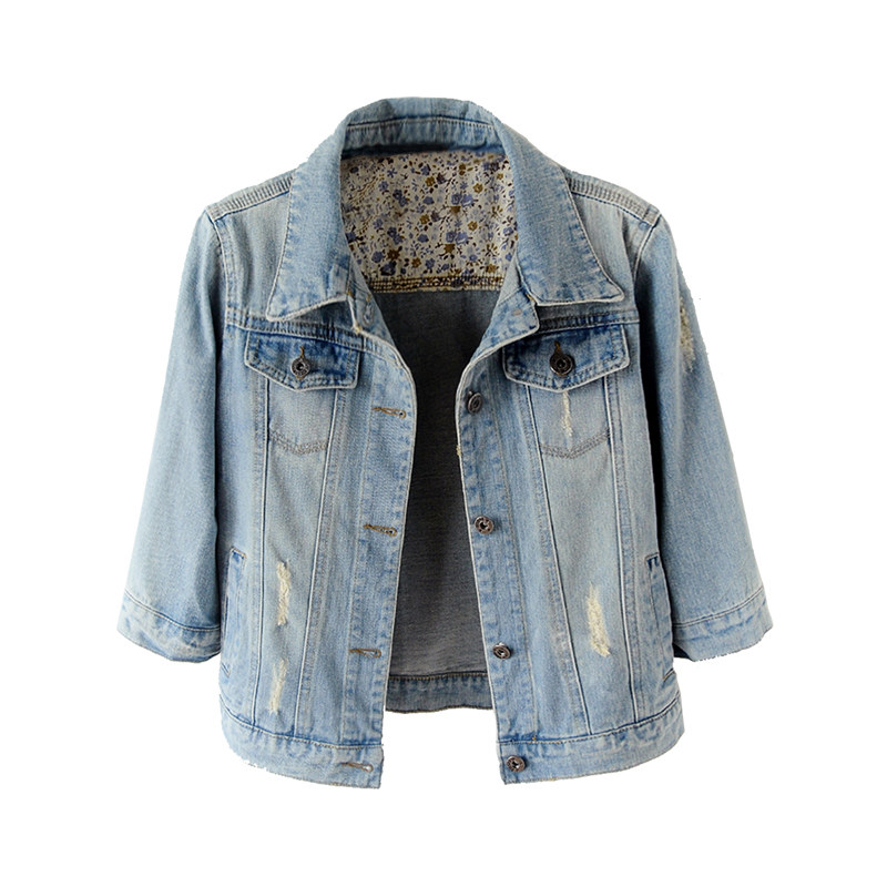 首页> 女装> 春秋韩版百搭修身中袖牛仔外套女短款七分袖夹克坎肩学生上衣大码