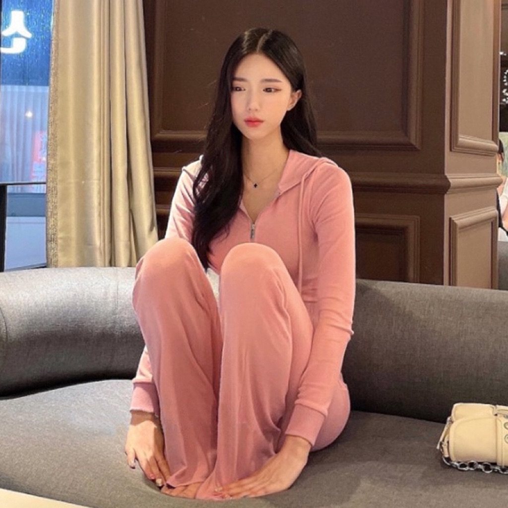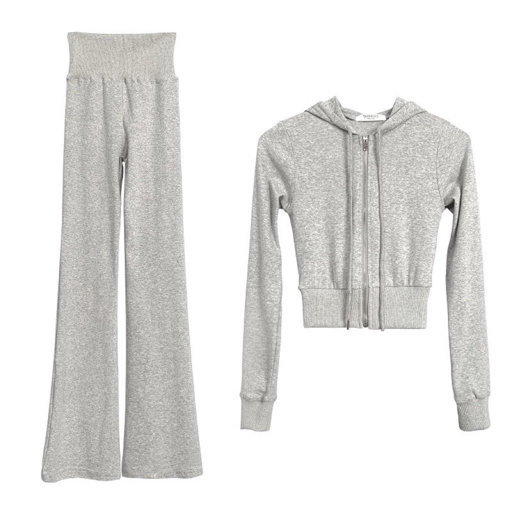 韩国东大门新款修身显瘦连帽短开衫高腰弹力休闲裤时尚两件套装女