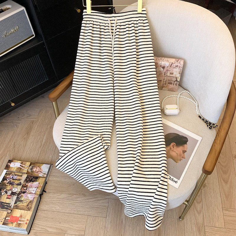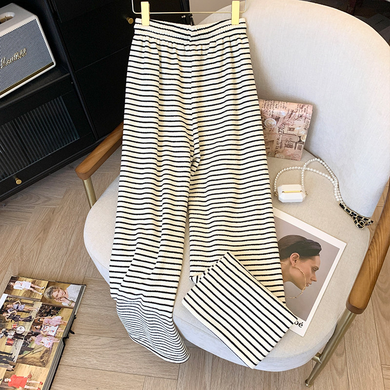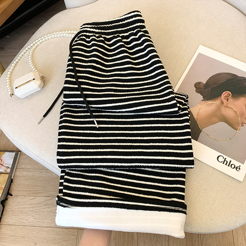 首页> 女装> 150小个子黑白条纹阔腿裤女秋冬加绒加厚抽绳155小码休闲直筒裤子