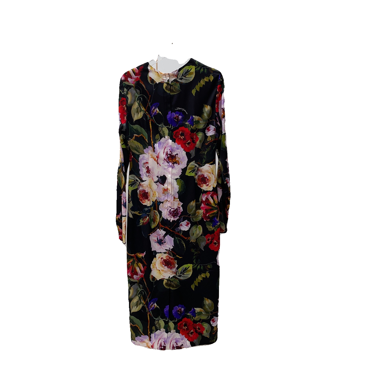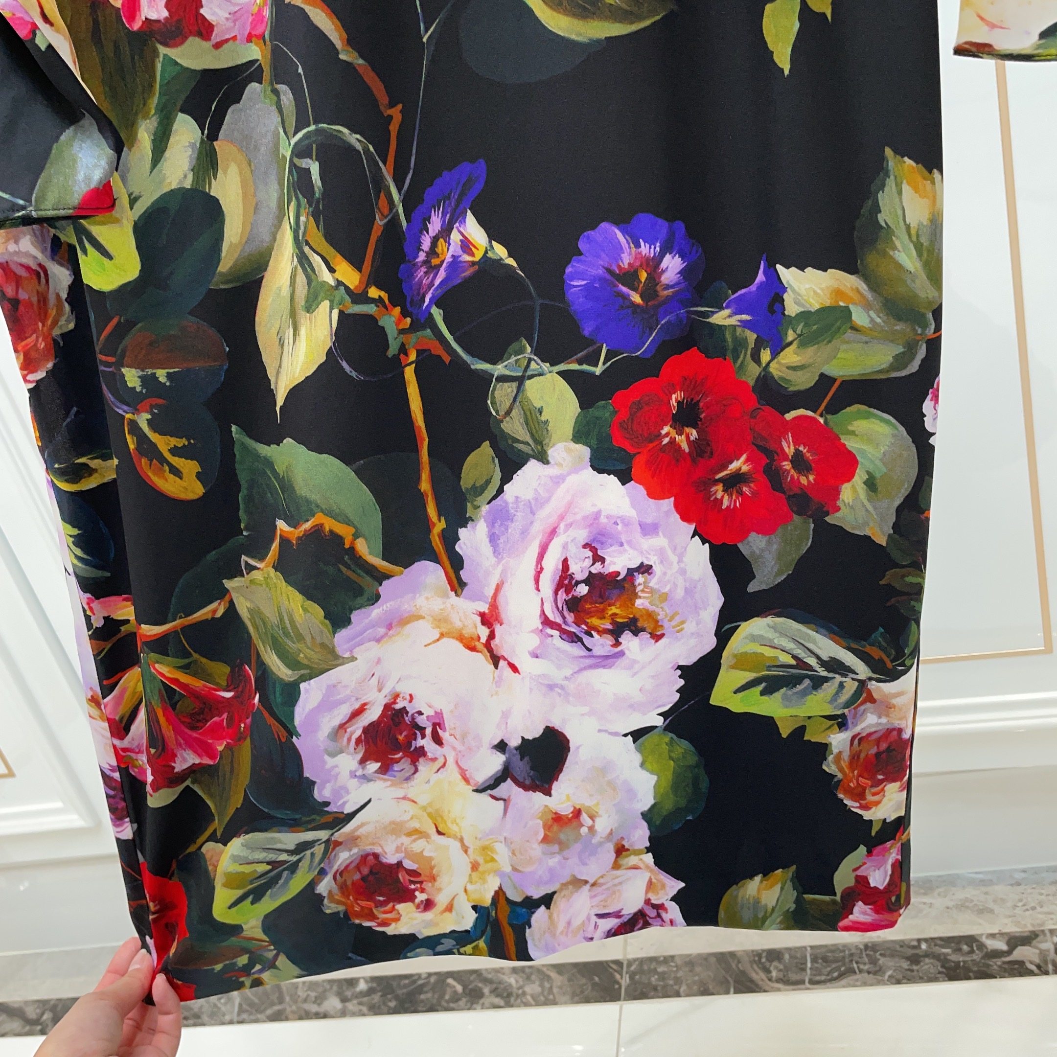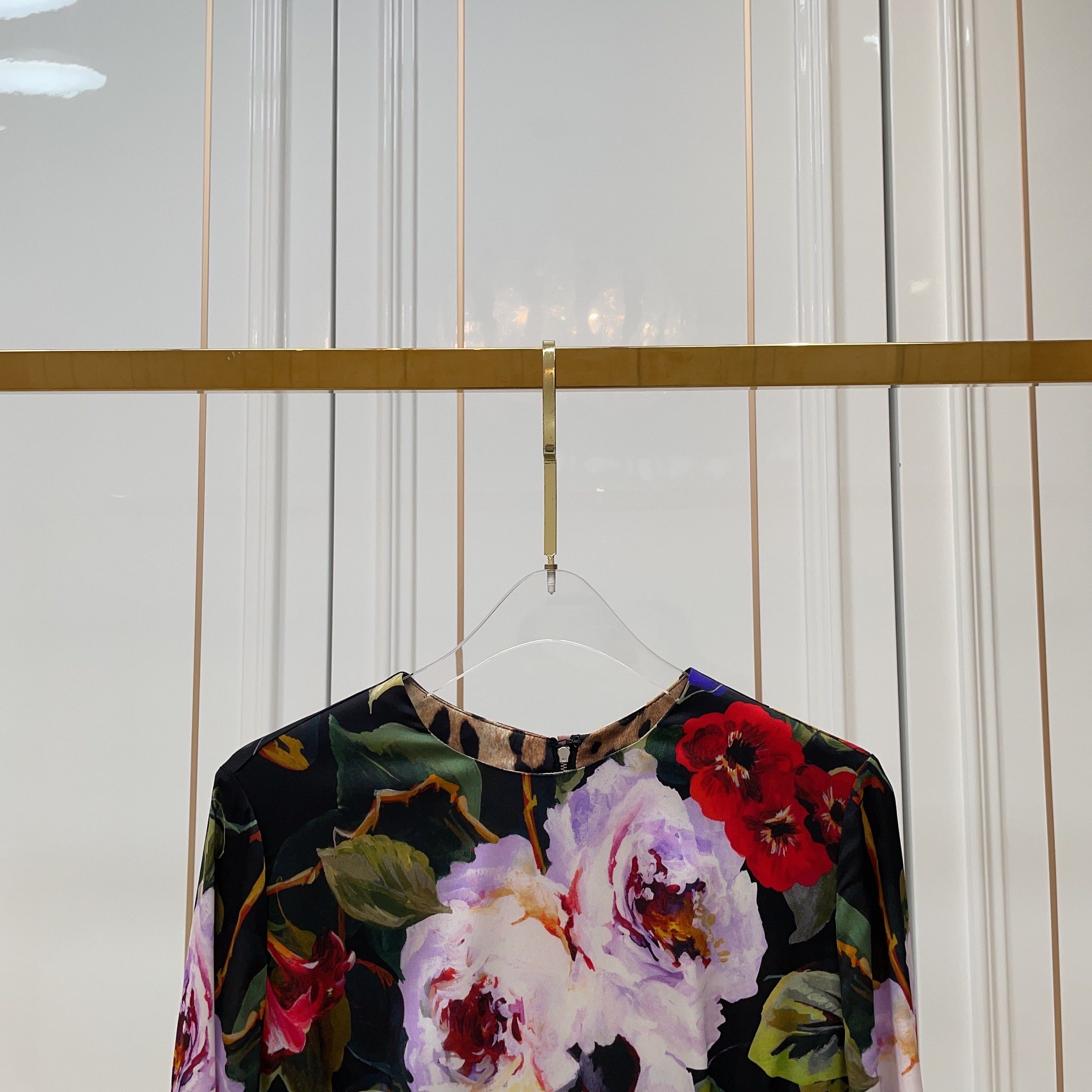 4408研家轻奢2024高级感花色印花里布豹纹印花收腰包臀长袖连衣裙