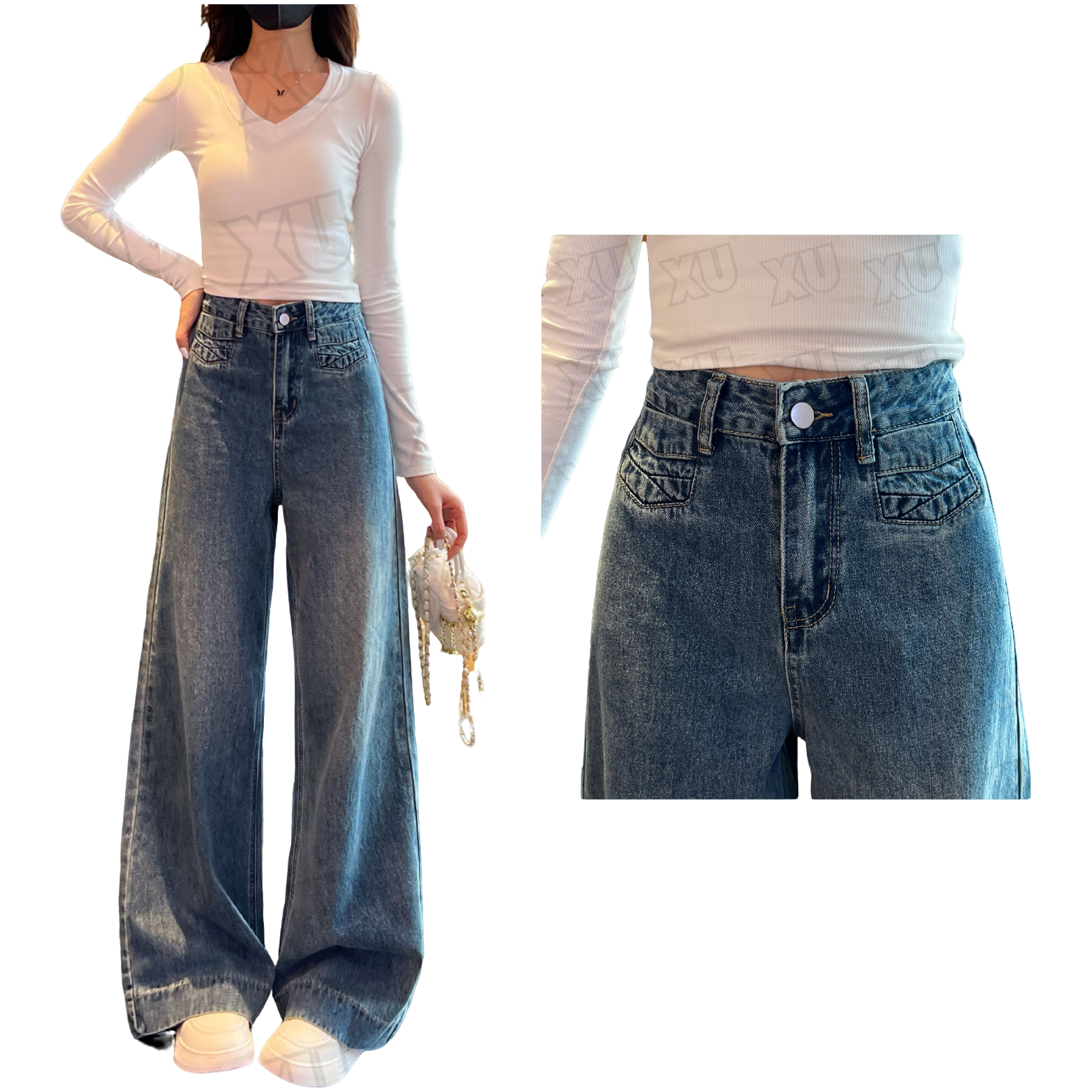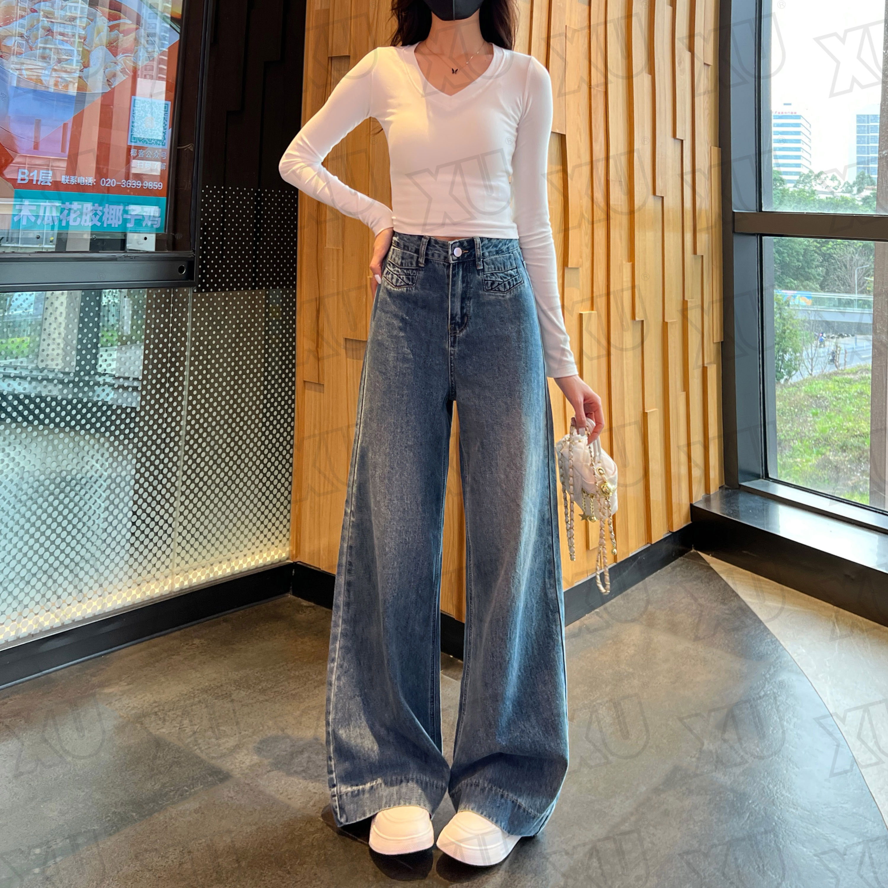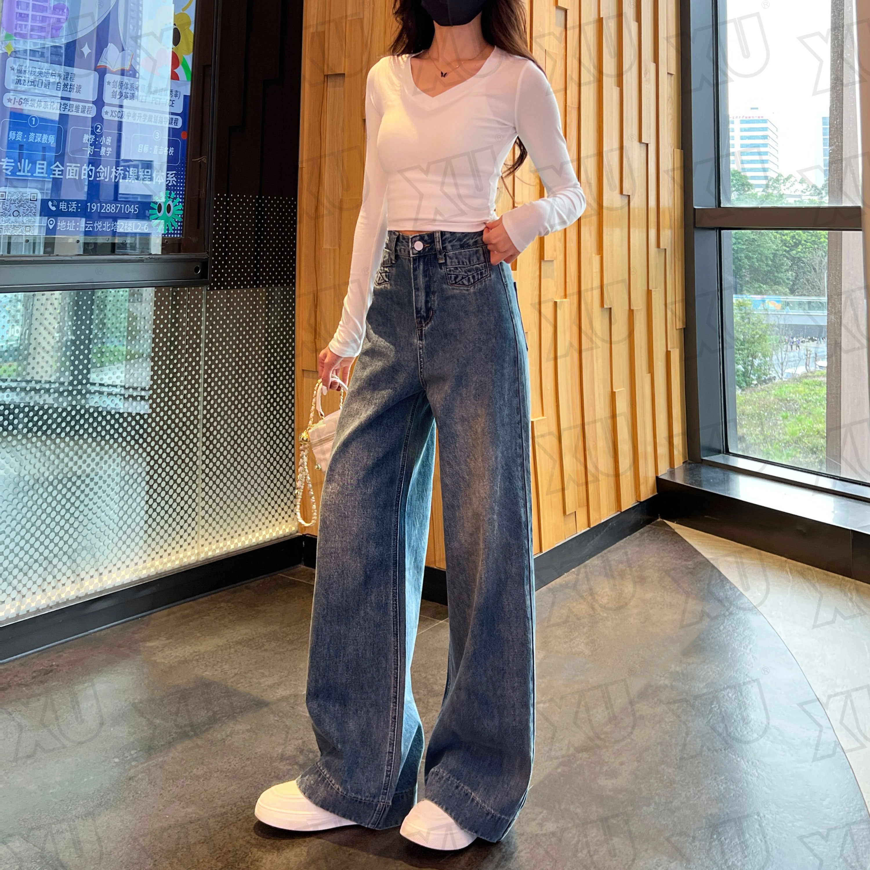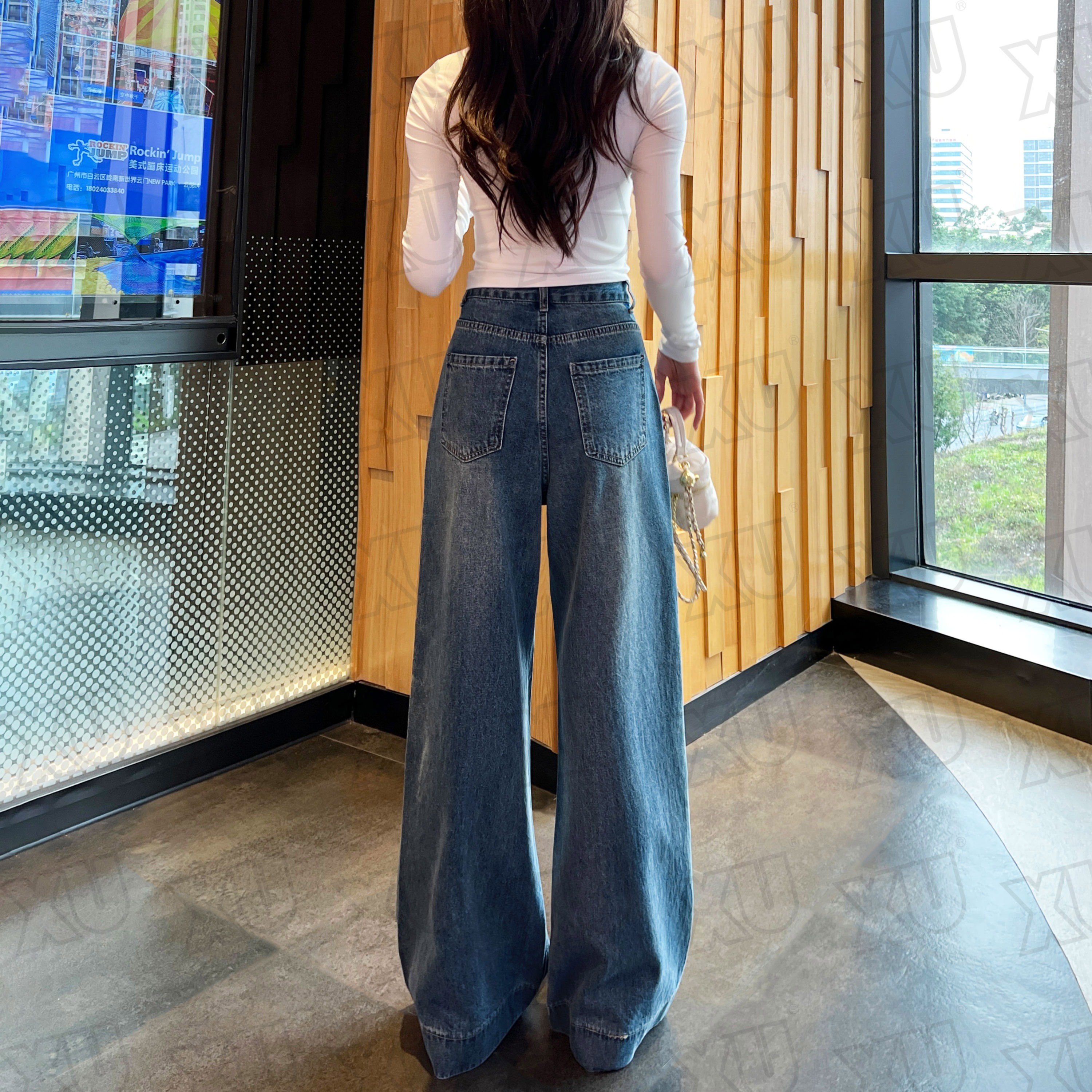 7480 W景泰蓝直筒牛仔裤女韩版高腰2025年夏季新款显瘦阔腿裤