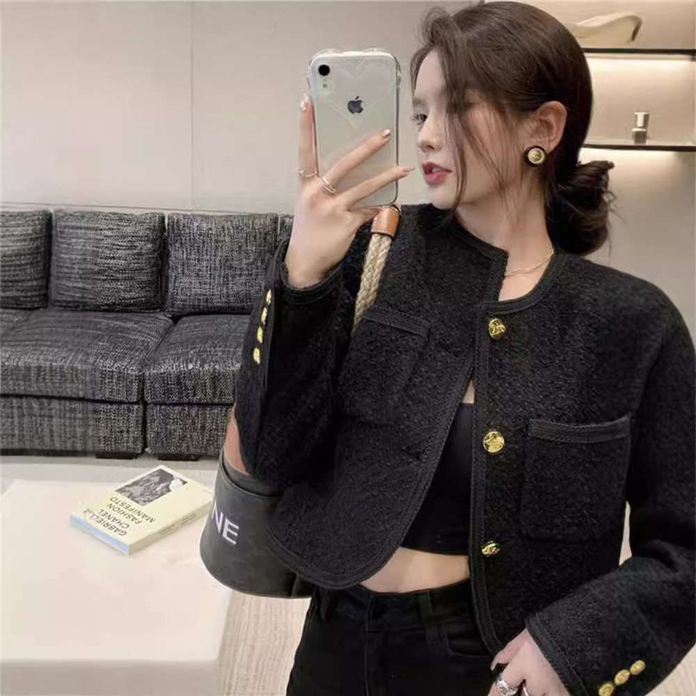 御姐风短款粗花呢开衫女春季2024新款小香风气质名媛优雅黑色外套